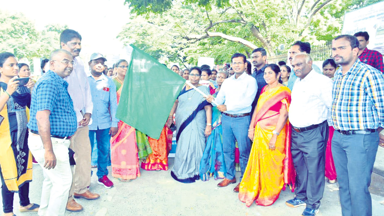 ఒంగోలు (కలెక్టరేట్), డిసెంబరు 2 : బాల్య వివాహాలను అరికట్టాల్సిన బాధ్యత అందరిపై ఉందని కలెక్టర్ దినేష్కుమార్ అన్నారు. ఆ దిశగా ప్రభుత్వం తీసుకుంటున్న చర్యలతోపాటు ప్రజలు తమవంతు కృషి చేయాలని పిలుపునిచ్చారు. బాల్య వివాహాల నివారణపై ఐసీడీఎస్, డీఆర్డీఏ, మెప్మా ఆధ్వర్యంలో శుక్రవారం నిర్వహించిన అవగాహన ర్యాలీని కలెక్టర్ జెండా ఊపి ప్రారంభించారు. ఈ సందర్భంగా మాట్లాడుతూ బాల్య వివాహాల్లో ప్రకాశం జిల్లా రాష్ట్రంలోనే రెండో స్థానంలో ఉందని, ఈ పరిస్థితి మారేలా చర్యలు చేపట్టాలన్నారు. లింగ వివక్ష చూపకుండా, బాల్య వివాహాలు చేయకుండా ఆడపిల్లను ఉన్నత చదవులు చదివించాలని తల్లిదండ్రులకు పిలుపునిచ్చారు. అనంతరం చర్చి సెంటర్లో మానవహారం నిర్వహించారు. కార్యక్రమంలో రాష్ట్ర బాలల హక్కుల పరిరక్షణ కమిటీ సభ్యురాలు బత్తుల పద్మావతి, డీఆర్డీఏ పీడీ బాబూరావు, మెప్మా పీడీ రవికుమార్, మహిళలు పాల్గొన్నారు.