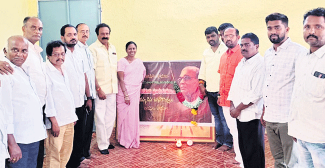 కలికిరి: స్థానిక కృషి విజ్ఞాన కేంద్రంలో మొక్కుబడిగా నివాళులర్పిం చారు. కనీసం ప్రకాశం చిత్రపటం పెట్టి ఒక పూలమాల వేయక పోవడాన్ని తప్పుబడుతున్నారు. స్థానిక గ్రంఽథాలయంలో ప్రకాశం చిత్రపటానికి పూలమాలలు వేసి నివాళులర్పించారు. గ్రంథాలయ అధికారి విజయకుమార్, రచయిత జరుగుమల్లి వీరయ్య, జూనియర్ కళాశాల విద్యార్థులు పాల్గొన్నారు.