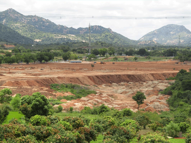 ఆట మైదానం పేరుతో భూమి చదును