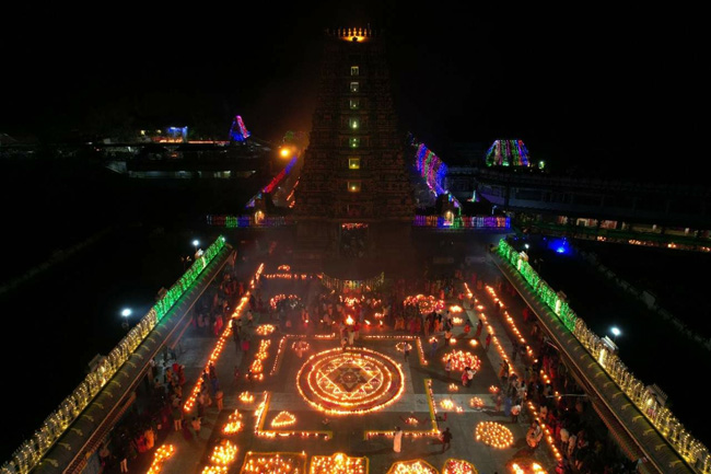 విజయవాడ, ఆంధ్రజ్యోతి : కోటి వెలుగులు ఒకేసారి విరబూసినట్టు దుర్గమ్మ కొండ కాంతులమయమైంది. కార్తీక పౌర్ణమిని పురస్కరించుకుని సోమవారం సాయంత్రం ఆలయ ప్రాంగణంలో నిర్వహించిన ఈ ఉత్సవంలో భక్తులు అధిక సంఖ్యలో పాల్గొని దీపాలు వెలిగించారు. దేవదాయ శాఖ మంత్రి కొట్టు సత్యనారాయణ, ఈవో భ్రమరాంబ పాల్గొని దీపోత్సవానికి శ్రీకారం చుట్టారు. కాగా, జిల్లాలోని శైవక్షేత్రాల్లో సోమవారం కార్తీక పౌర్ణమి వేడుకలు ఘనంగా జరిగాయి. కృష్ణానదిలో పుణ్యస్నానాలు ఆచరించిన భక్తులు శివయ్యను దర్శించి అభిషేకాలు నిర్వహించారు. పున్నమి సాయంత్రం జ్వాలాతోరణం ఘనంగా జరిపారు.