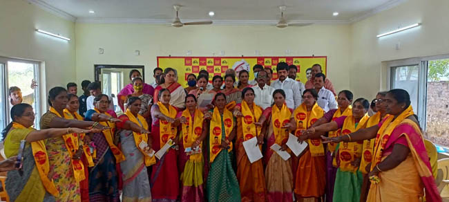 మచిలీపట్నం టౌన్, ఫిబ్రవరి 7 : మహిళా శక్తి ఎంతో గొప్పదని, మహిళలు తలచుకుంటే వైసీపీ ప్రభుత్వం కూలిపోతుందని మాజీమంత్రి, టీడీపీ పొలిట్బ్యూరో సభ్యుడు కొల్లు రవీంద్ర పిలుపునిచ్చారు. టీడీపీ అసెంబ్లీ నియోజకవర్గ కార్యాలయంలో సోమవారం మచిలీపట్నం అసెంబ్లీ నియోజకవర్గ తెలుగు మహిళల నూతన కమిటీ సభ్యుల ప్రమాణ స్వీకారం జరిగింది. టీడీపీ మచిలీపట్నం పార్లమెంట్ తెలుగు మహిళ అధ్యక్షురాలు తలశిల స్వర్ణలత అధ్యక్షతన జరిగిన ఈ ప్రమాణ స్వీకార కార్యక్రమంలో మాజీ మంత్రి కొల్లు రవీంద్ర మాట్లాడుతూ వైసీపీ అధికారంలోకి వచ్చిన తరువాత 150 మంది మహిళలు అకృత్యాలకు గురయ్యారన్నారు. మచిలీపట్నం పార్లమెంట్ నియోజకవర్గ అధ్యక్షుడు కొనకళ్ల నారాయణరావు మాట్లాడుతూ రానున్న రెండున్నరేళ్లలో మహిళలు ప్రజలను చైతన్యపరచాలన్నారు. తలశిల స్వర్ణలత మాట్లాడుతూ జిల్లా తెలుగు మహిళల తెగువను ఎంతో ధైర్యంగా ప్రదర్శిస్తున్నారని, చంద్రబాబును సీఎం చేయడమే లక్ష్యమని చెప్పారు. ఈ సమావేశంలో టీడీపీ తెలుగు రైతు అధికార ప్రతినిధి గొర్రెపాటి గోపీచంద్, మాజీ మంత్రి కొల్లు రవీంద్ర సతీమణి కొల్లు నీలిమ, టీడీపీ తెలుగు మహిళ రాష్ట్ర ప్రధాన కార్యదర్శి మూల్పూరి కల్యాణి, టీడీపీ మచిలీపట్నం పార్లమెంట్ తెలుగు మహిళ కార్యదర్శి లతీఫున్నీసా, టౌన్ అధ్యక్షురాలు వసంత, ప్రధాన కార్యదర్శి త్రిపుర, కరెడ్ల సుశీల, కార్పొరేటర్లు చిత్తజల్లు నాగరాము, దింటకుర్తి సుధాకర్, సమతాకీర్తి, దేవరపల్లి అనిత, అన్నం శ్రీఆనంద్ మాట్లాడారు. తెలుగు మహిళ అసెంబ్లీ నియోజకవర్గ అధ్యక్షురాలు లంకిశెట్టి నీరజ, ఉపాధ్యక్షురాలు ఎం.లక్ష్మీనాంచారమ్మ, మారగాని వాణి, వేమూరి శ్రీదేవి, ప్రధాన కార్యదర్శిగా జొన్నలగడ్డ విజయలక్ష్మి, అధికార ప్రతినిధిగా బి.నాగవెంకట లక్ష్మి, మరకాని సమతాకీర్తి తదితరులతో ప్రమాణ స్వీకారం చేయించారు.