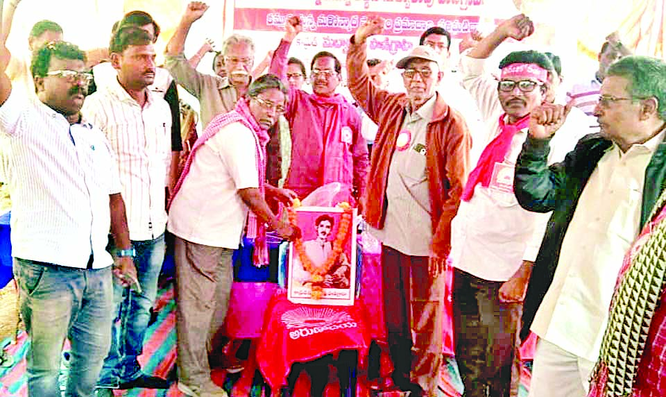 పలాసరూరల్: శ్రీకాకుళం సాయుధ గిరిజన రైతాంగ పోరాట యోధుడు సుబ్బారావు పాణిగ్రాహి వర్థంతి సందర్భంగా బొడ్డపాడు అమరవీరు స్మారక మందిరంలో గురువారం ఆయన చిత్రపటానికి పూల మాల వేసి నివాళులు అర్పించారు. సీపీఐఎంఎల్ న్యూడెమోక్రసీ జిల్లా కార్యదర్శి వంకల మాధవరావు మాట్లాడుతూ శ్రీకాకుళం సాయుధ పోరాటం దేశ చరిత్రలోనే ఒక గొప్ప పోరాటంగా నిలిచిం దన్నారు. ఈ ఉద్యమంలో సుబ్బారావు పాణిగ్రాహి ఒక చేత పెన్ను, మరో చేత గన్ను పట్టుకొని విరోచితంగా పోరాడారని కొనియాడా రు. కార్యక్రమంలో ప్రజాసంఘాల నాయకులు తామాడ సన్యాసి రావు, జి.బాలకృష్ణ, మద్దిల వినోద్, సొర్ర రామారావు, కె.సోమేశ్వర రావు, కుమార్, మామిడి భీమారావు తదితరులు పాల్గొన్నారు.