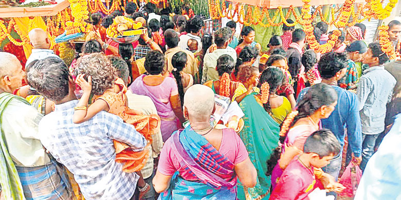 ధారాలమ్మ ఆలయానికి పోటెత్తిన భక్తులు