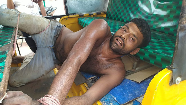 కైకలూరు, మే 1: కైకలూరు పట్టణంలో మతి స్థిమితం లేని యువకుడు వీరంగం సృష్టించాడు. ఒరిస్సా రాష్ర్టానికి చెందిన ఈ యువకుడు శనివారం రాత్రి కైకలూరు విజయలక్ష్మి థియేటర్ సెంటర్లో రహదార్లపై సంచరిస్తూ ప్రజలను భయబ్రాంతులకు గురి చేశాడు. ఆదివారం ఉదయం బస్టాండ్ సెంటర్లో పార్క్చేసి ఉన్న కారును తీసుకువెళ్ళే ప్రయత్నం చేయగా స్థానికులు టౌన్ పోలీసులుకు అప్పగించారు. ఎట్టకేలకు అతని నుంచి సమాచారం రాబట్టి ఫోన్ ద్వారా తల్లిదండ్రులకు సమాచారం ఇచ్చారు.