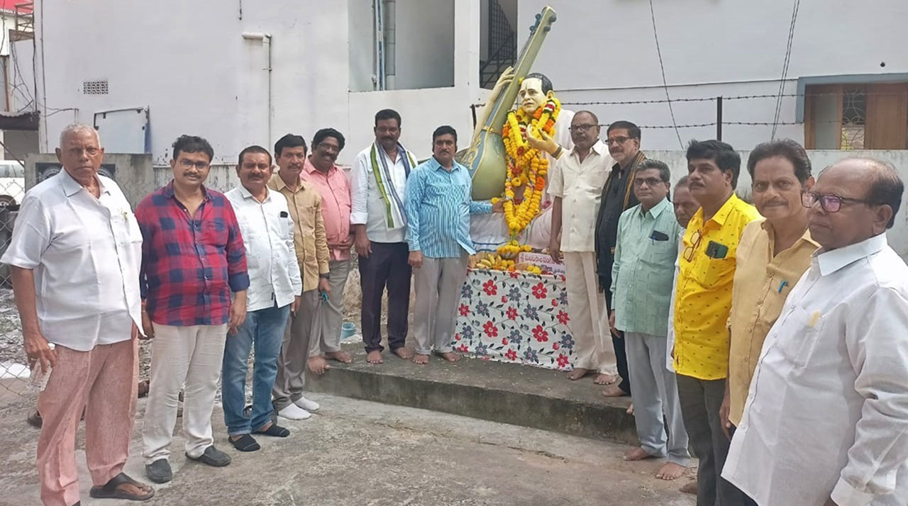 భీమవరం టౌన్, డిసెంబరు 4: ఘంటసాల అమర గాయకుడని, ఆయన పాటలు ఏ తరం వారినైనా అలరిస్తాయని పట్టణ కళాకారుల సంఘం కన్వీనర్ చెరుకువాడ రంగసాయి అన్నారు. ఘంటసాల జయంతి సందర్భంగా ఆదివారం ఘంట సాల వెంకటేశ్వరరావు విగ్రహానికి పూలమాల వేసి నివాళులర్పించారు. మధుర గానంతో శ్రోతలను ఉర్రూతలూగించారని, సంగీత దర్శకుడిగా ప్రతి భ చాటుకున్నారన్నారు. ఏపీ ప్రజా నాట్యమండలి జిల్లా కార్యదర్శి ఎం.సీతా రామప్రసాద్ మాట్లాడుతూ నేటి తరం యువత కూడా ఘంటసాల పాటలను ఆదరించడం గొప్ప విషయమన్నారు. మూడు వేల గీతాలు ఆలపించిన ఘంటసాల విదేశాల్లో కూడా ఆదరణ పొందారన్నారు. ఎస్కె ఛాన్బాషా, అరసవల్లి సుబ్రహ్మణ్యం, కొండ్రు శ్రీను, నరహరిశెట్టి కృష్ణ, పి శ్రీనివాస్, సత్యనారాయణ తదితరులు ఉన్నారు.
