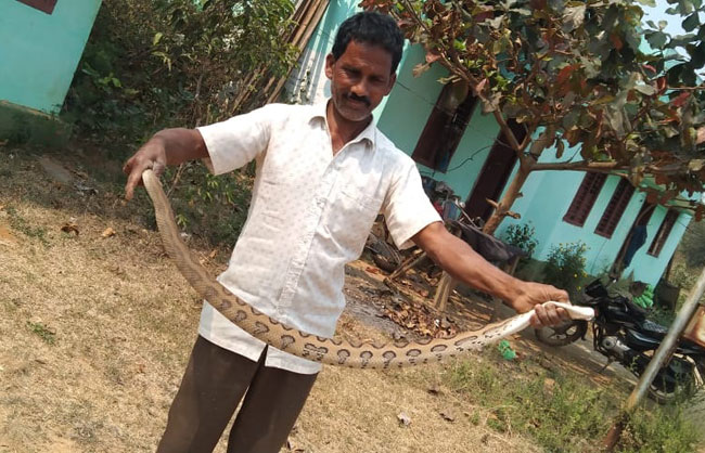 కామవరపుకోట, ఫిబ్రవరి 16: తహసీల్దార్ కార్యాలయంలో బుధవారం మధ్యాహ్నం పొడ పాము దూరింది. పామును చూసిన ఉద్యోగులు భయపడ్డారు. వెంటనే పాములు పట్టే భీమిరెడ్డి మోహన్రావును పిలిపించారు. అతడు కొద్దిసేపు కష్టపడి పామును పట్టుకున్నాడు.