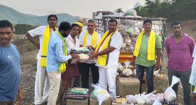 జంగారెడ్డిగూడెం (ఏలూరు జిల్లా): తెలుగుదేశం పార్టీ జాతీయ అధ్యక్షుడు నారా చంద్రబాబు నాయుడు (Chandrababu) ఆదేశాల మేరకు గోదావరి (Godavari) వరద బాధితులకు టీ నర్సాపురం మండల టీడీపీ నేతలు (Tdp Leaders) అండగా నిలిచారు. వరదలతో నిరాశ్రయులైన వేలేరుపాడు మండలం కోయిదా పంచాయతీలోని 575 కుటుంబాలకు 2 లక్షల రూపాయల విలువైన బియ్యం, నిత్యావసర వస్తువులు, దుప్పట్లు పంపిణీ చేశారు. అలాగే లక్ష్మి ఏజెన్సీస్ ఐటీసీ ప్రైవేట్ డీలర్స్ అసోసియేషన్ జంగారెడ్డిగూడెం తరుపున 85 వేల రూపాయల విలువైన బిస్కెట్లను నియోజకవర్గం కన్వీనర్ బొరగం శ్రీనివాసులు చేతుల మీదుగా పంపిణీ చేయటం జరిగింది.