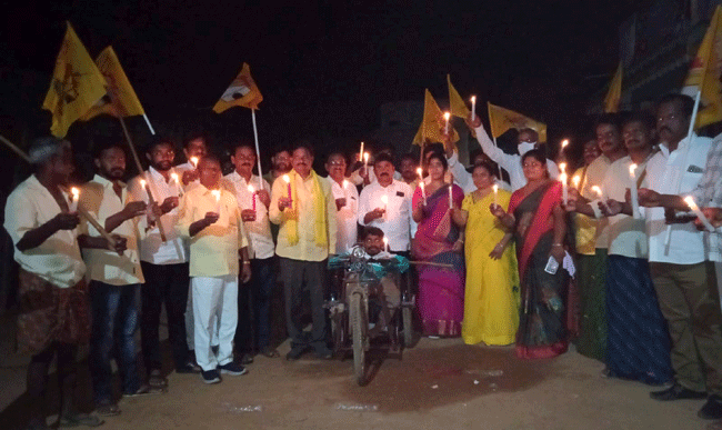 కొవ్వొత్తులు, విసనకర్రలతో టీడీపీ నాయకుల నిరసన
