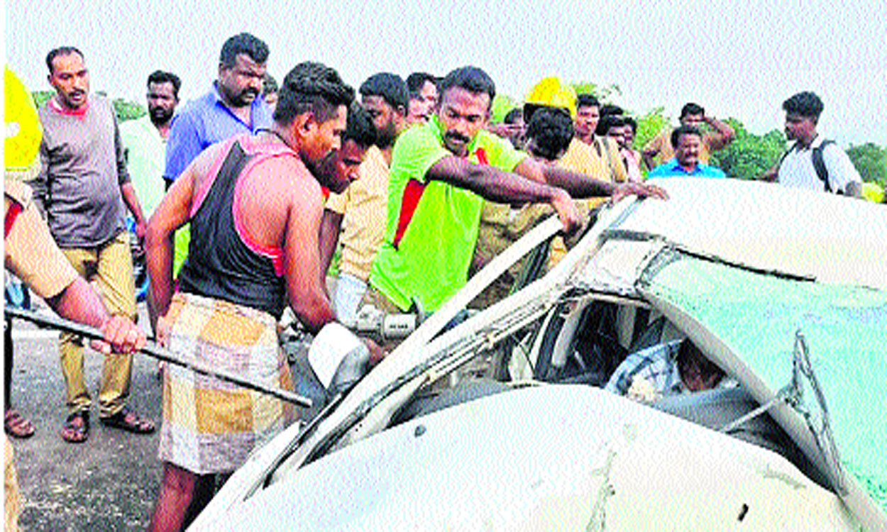 పెరంబూర్(చెన్నై), అక్టోబరు 26: తిరుచ్చి సమీపంలో మూడు కార్లు ఢీకొన్న ఘటనలో నలుగురు మహిళలు మృతిచెందారు. బుధవారం సాయంత్రం జరిగిన ఈ ఘటనకు సంబంధించి వివరాలిలా... తిరుచ్చి-మదురై జాతీయ రహదారి తువరకుర్చి సమీపంలో మదురై నుంచి తిరుచ్చి వైపు వస్తున్న కారు టైరు హఠాత్తుగా పేలడంతో అదుపుతప్పి ఎదురుగా వస్తున్న రెండు కార్లను ఢీకొంది. ఈ ఘటనతో కారులో వున్న నలుగురు మహిళలు అక్కడికక్కడే మృతిచెందారు. సమాచారం అందుకున్న పోలీసులు ఘటనా స్థలానికి చేరుకొని మృతదేహాలను స్వాధీనం చేసుకుని పోస్టుమార్టంకు తరలించారు. అదే విధంగా కారులో చిక్కుకున్న ముగ్గురు చిన్నారులను బయటకు తీసి ప్రభుత్వాసుపత్రికి పంపించారు. ఇదిలా వుండగా మృతులను తిరుచ్చికి చెందిన మంగై అరసి (64), పూజ (20), పద్మ (20), రంజనగా గుర్తించిన పోలీసులు ఘటనపై కేసు నమోదుచేసి దర్యాప్తు చేపట్టారు.