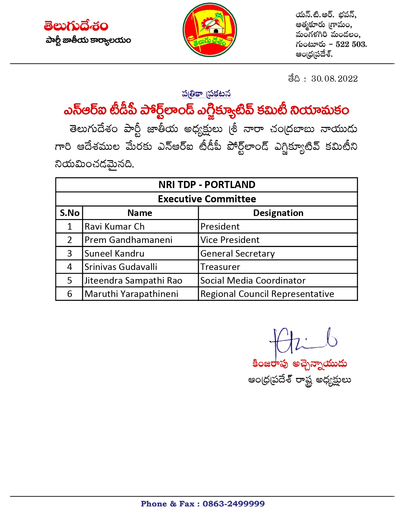 ఎన్నారై డెస్క్: అమెరికా నగరాల్లోని ఎన్నారై టీడీపీ(TDP) సెల్స్కు కొత్తగా కార్యవర్గ సభ్యులు నియమితులయ్యారు. ఈ మేరకు పార్టీ రాష్ట్ర అధ్యక్షుడు కింజరాపు అచ్చెన్నాయుడు తాజాగా ఆదేశాలు జారీ చేశారు. కాన్సస్, డెలావర్, పిట్స్బర్గ్, పోర్ట్ల్యాండ్, రాలీ ఎన్నారై శాఖలకు కొత్త సభ్యులను నియమించారు.