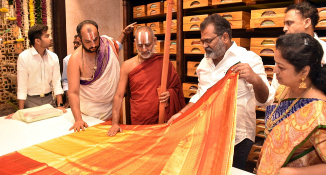 హైదరాబాద్ : భాగ్యనగరంలో అతిపెద్ద గౌరి సిగ్నేచర్ షోరూం ప్రారంభోత్సవం అంగరంగ వైభవంగా జరిగింది. పెళ్లి పట్టు చీరలకు ప్రత్యేకమైన గౌరి సిగ్నేచర్ కలెక్షన్స్ను రామానుజ జీయర్ స్వామిజీ తన దివ్యమైన హస్తాలతో శుభప్రదంగా ప్రారంభించి, రెండు తెలుగు రాష్ట్రాల్లో పవిత్రమైన పెళ్ళి పట్టు చీరలకు, భారతదేశంలోనే అని కార్ఫ్ట్ రకాల పట్టు శారీలు ఓకే ఒక వేదిక గౌరి సిగ్నేచర్ కలెక్షన్స్ అని పేర్కొన్నారు. స్వచ్ఛమైన విలక్షణమైన పట్టు వస్త్ర సోయగాలు ఇప్పుడు హైదరాబాద్ వస్త్ర అభిమానులకు గౌరి సిగ్నేచర్ కలెక్షన్స్ అందుబాటులోకి తెచ్చింది. మగువల మనసులు దోచే పట్టు వస్త్రాలను అందుబాటు ధరలకే విక్రయించేందుకుగాను గౌరి సిగ్నేచర్ కలెక్షన్స్ హైదరాబాద్లోని రోడ్ నెంబర్ 36, జూబ్లీహిల్స్లో ప్రారంభించారు.