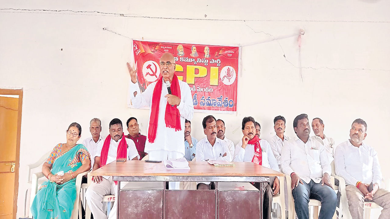 చిగురుమామిడి, డిసెంబరు 13: కేంద్రంలో, రాష్ట్రంలో రాజ్యాంగబద్ధంగా, ప్రజాస్వామ్య పద్ధతిలో పరిపాలన ఉండాలని, అప్రజాస్వామికంగా వ్యవహరిస్తే ఉరుకోబోమని సీపీఐ జాతీయ కార్యవర్గ సభ్యుడు చాడ వెంకటరెడ్డి ఆన్నారు. మంగళవారం మండల కేంద్రంలోని ముస్కు రాజిరెడ్డి స్మారక భవనంలో సిపిఐ మండల సర్వసభ్య సమావేశం సీపీఐ జిల్లా నాయకుడు ఎలగందులు రాజయ్య అధ్యక్షతన జరిగింది. ఈ సమావేశానికి మఖ్యఅతిథిగా చాడ వెంకటరెడ్డి హాజరయ్యారు. అనంతరం ఆయన విలేకరులతో మాట్లాడుతూ దేశ సంపదను కొల్లగొడితే ఉరుకునే ప్రసక్తి లేదన్నారు. నిరంతరం పాలకుల అవినీతి చిట్టాలను వెలికి తీస్తూ ఉద్యమాలు చేయడమే తమ పార్టీ లక్ష్యమన్నారు. కరోనా సమయంలో కోట్లాది మంది కార్మికులు ఉద్యోగాలు కోల్పోయి విధిన పడ్డా కేంద్ర ప్రభుత్వం పట్టించుకోలేదన్నారు. అవినీతిపరులు, అక్రమార్కులకు కేంద్ర ప్రభుత్వం అండగా నిలుస్తోందని విమర్శించారు. అర్హులైన పేద ప్రజలకు ఇళ్లు నిర్మించుకునేందుకు రాష్ట్ర ప్రభుత్వం ఐదు లక్షలు ఇవ్వాలని డిమాండ్ చేశారు. ప్రజా గొంతుకులైన వరవరరావు, ప్రొఫెసర్ సాయాబాబా లాంటి వ్యక్తులను జైళ్లల్లో భందించడం కేంద్ర ప్రభుత్వానికి భావ్యం కాదని, వారిని వెంటనే విడుదల చేసి తమ చిత్తశుద్ధిని చాటుకోవాలన్నారు. అన్ని గ్రామాల్లో సీపీఐని బలోపేతం చేయాలని, గ్రామాల్లో జరుగుత్ను అవినితి అక్రమాలపై నిరంతరం ప్రజలపక్షానా పోరాటాలు చేయాలని కార్యకర్తలకు పిలుపునిచ్చినారు. సమావేశంలో సీపీఐ జిల్లా కార్యదర్శి మర్రి వెంకటస్వామి, సీపీఐ రాష్ట్ర కార్యవర్గ సభ్యుడు అందె స్వామి, గూడెం లక్ష్మి, సీపీఐ మండల కార్యదర్శి నాగెళ్లి లక్ష్మారెడ్డి, చాడ శ్రీధర్రెడ్డి, రైతు సంఘం జిల్లా అధ్యక్షుడు బోయిని అశోక్, బూడిద సదాశివ, అందె చిన్న స్వామి పాల్గొన్నారు.
