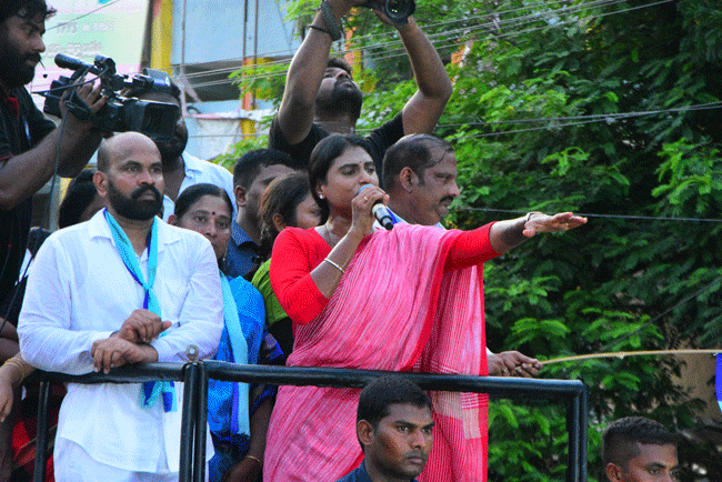 ఖమ్మంసంక్షేమవిభాగం, జూలై 16: ఖమ్మంలో నియంతపాలన, రౌడీరాజ్యం కొనసాగుతోందని వైఎస్ఆర్టీపీ అధ్యక్షురాలు షర్మిల మంత్రి పువ్వాడను ఉద్దేశించి తీవ్ర వ్యాఖ్యలు చేశారు. ఆమె చేపట్టిన ప్రజాప్రస్థానం పాదయాత్ర 96వ రోజు గురువారం చింతకాని మండలం నుంచి ధంసలాపురం వద్ద ఖమ్మం నగరంలోకి ప్రవేశించింది. అక్కడి నుంచి సంబానినగర్, ముస్తఫానగర్, బోనకల్ క్రాస్రోడ్, జెడ్పీ సెంటర్, వైరారోడ్ మీదుగా షర్మిల పాత బస్టాండ్ వద్దకు చేరుకుని బహిరంగసభలో ప్రసగించారు. ఉద్యోగాల కోసం రాష్ట్రంలో ఎంతోమంది నిరుద్యోగులు ఆత్మహత్యలకు పాల్పడుతున్నా పట్టించుకోని నాయకుడు కేసీఆర్ అని, తాను చేపట్టిన పాదయాత్రతోనే రాష్ట్ర ప్రభుత్వం ఉద్యోగ నోటిఫికేషన్లు ఇచ్చిందని పేర్కొన్నారు. ఇక మంత్రి పువ్వాడ అజయ్కు నిలకడలేదని, తొలుత కమ్యూనిస్టుగా, ఆ తర్వాత వైఎస్ఆర్కాంగ్రెస్, ఆ తర్వాత కాంగ్రెస్, చివరికి టీర్ఎస్లో చేరాడన్నారు. మంత్రి పదవికున్న విలువ, హోదా, హుందాతనం గురించి ఆయనకు తెలియదని, ఎన్ని ఆస్తులు సంపాదించినా, కబ్జాలుచేసినా అతడి ధనదాహం మాత్రం తీరడంలేదన్నారు. ‘కొత్త బిచ్చగాడు పొద్దెరగడనే’ దానికి పువ్వాడ సరిగ్గా సరిపోతాడని ఎద్దేవా చేశారు. రోడ్లు, కాల్వలు, అసైన్డభూములను కబ్జాచేశాడని, ఒకప్పుడు ఇల్లులేనివ్యక్తి నేడు హైదరాబాదులోని శామీర్పేటలో వందల కోట్ల విలువైన ఆస్తులు, భూములు ఎలా సంపా దించాడో అర్థం చేసుకో వాలన్నారు. ఖమ్మంలో ఏకాంట్రాక్టు పనినైనా తానే చేయాల న్నట్టు అజయ్ ప్రవర్తన ఉందన్నా రు. నాలుగు రోడ్లు వేసి అదే అభివృద్ధి అంటే ఎలా అని ప్రశ్నించారు. అజయ్ రవా ణాశాఖ మంత్రి అయిన తర్వాత ఆర్టీసీ అప్పులపాలై ందని, కార్మికులకు సంఘ మే లేకుండా చేసిన కంత్రీ మంత్రి అని మండిపడ్డారు. నగరంలో వైఎస్ఆర్టీపీ కార్యక ర్తలపై కేసులు పెట్టిస్తున్నారని, పార్టీ దిమ్మెలను, వైఎస్ విగ్రహాలను కూడా తీయిస్తున్నారని ఆరోపించారు. పోలీసులును పనోళ్లుగా, కుక్కల్లా వాడుకోవడం మగతనంకాదని, ఒక రౌడీషటర్గా వ్యవహరించడం గొప్పతనం కాదన్నారు. కేసీఆర్ లాగానే ఆయన మంత్రులు కూడా వ్యవహరిస్తున్నారని దోచుకోవడం, దాచుకోవడం తప్ప వారికేమీ చేతకాదన్నారు. 16మంది సీఎంలు చేయనన్ని అప్పులు కేసీఆర్ ఒక్కరే చేశారని మండిపడ్డారు. ఈ సభలో షర్మిలతోపాటు ఆ పార్టీ జిల్లా అధ్యక్షుడు లక్కినేని సుధీర్, బీరవల్లి శ్రీనివాసరెడ్డి, తుంపాల కృష్ణమోహన, పలువురు నియోజకవర్గ నాయకులు పాల్గొన్నారు.