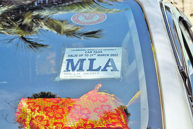 కారుపై ఎమ్మెల్యే స్టిక్కరుందంటే చాలు.. అందులో ఎవరున్నా.. ఉన్నది ప్రముఖుడేననే భావన. ఆఖరికి వాహనంలో ఎమ్మెల్యే లేకున్నా కారును ఆపే ధైర్యం ఎవరూ చేయరు. ట్రాఫిక్లో చిక్కుకున్నా వెంటనే మార్గం..