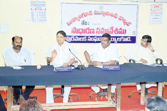 మిర్యాలగూడ, ఏప్రిల్ 18: మిర్యాలగూడ పట్టణ అభివృద్ధికి సహకరించాలని ఎమ్మెల్యే భాస్కర్రావు అన్నారు. సోమవారం చైర్మన భార్గవ్ అధ్యక్షతన జరిగిన మునిసిపల్ సమావేశం జరిగింది. వి ద్యుత అధికారుల తీరుపై రగడ జరిగింది. మే నెలలో పట్టణ ప్రగ తి కార్యక్రమం చేపట్టనున్న నేపథ్యంలో విద్యుత అధికారులు అన్ని వార్డులు స్వయంగా పరిశీలించి సమస్యలను తమ దృష్టికి తీసుకురావాలని సూచించారు. కౌన్సిలర్లు వార్డుల్లో ప్రజా సమస్యలపై దృ ష్టి సారించాలన్నారు. విద్యుత అధికారులు కౌన్సిల్లో లేవనెత్తిన స మస్యలను వినడమే తప్ప పరిష్కరించడం లేదన్నారు. తరచుగా క రెంటు కోతలు పెడుతున్నారని కాంగ్రెస్ కౌన్సిలర్లు ఆరోపించారు. స మావేశంలో మునిసిపల్ వైస్చైర్మన కోటేశ్వరరావు, మునిసిపల్ క మిషనర్ రవీందర్సాగర్, కౌన్సిలర్లు, అధికారులు పాల్గొన్నారు. వి ద్యుత అధికారుల వైఖరిని నిరసిస్తూ కాంగ్రెస్ కౌన్సిలర్లు కా ర్యాలయం ఎదుట ఫ్లకార్డులతో నిరసన వ్యక్తం చేశారు. ఈ సందర్భంగా మునిసిపల్ ఫ్లోర్లీడర్ బత్తుల లక్ష్మారెడ్డి మాట్లాడుతూ అ ధికారులు సమావేశంలో చెప్పిన సమస్యలను రాసుకొని బయటకు వెళ్లి మరిచిపోతున్నారని అన్నారు. కార్యక్రమంలో కాంగ్రెస్ కౌన్సిలర్లు ముదిరెడ్డి నర్సిరెడ్డి, దేశిడి శేఖర్రెడ్డి, జయలక్ష్మి, జలందర్రెడ్డి, స క్కుబాయమ్మ, రామకృష్ణ, జాని, నాగలక్ష్మి, రుణాల్రెడ్డి, అనిత, వెం కటమ్మ తదితరులు పాల్గొన్నారు.