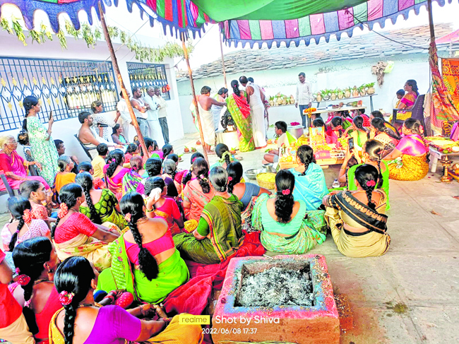 బొంరాస్పేట్, జూన్ 8: మండల పరిధిలోని దుద్యాల్ గ్రామంలో శ్రీ చౌడేశ్వరి మాత విగ్రహ ప్రతిష్టాపన మహోత్సవాలు వైభవంగా కొనసాగుతున్నాయి. ఉత్సవాల్లో భాగంగా రెండో రోజు మహిళలు బోనాల ఊరేగింపుగా వెళ్లి అమ్మవారికి నైవేద్యాలు సమర్పించి మొక్కులు తీర్చుకున్నారు. అంతకు ముందు ఆలయంలో దుర్గసూక్త హోమం, గణపతి, నవగ్రహ, రుద్ర హోమాలు, అంకురార్పణ, ధాన్యధివాసం, ప్రదోషకాల పూజలు, చతుర్వేద పారాయణ సంగీతసేవ, పుష్పాధివాసం, హారతి, మంత్ర పుష్పం, షయ్యాదివాసం తదితర పూజా కార్యక్రమాలు నిర్వహించారు. భక్తులు అధిక సంఖ్యలో పాల్గొని పూజలు చేశారు. ఆలయ కమిటీ నిర్వాహకులు అన్నదాన కార్యక్రమాన్ని ఏర్పాటు చేశారు.