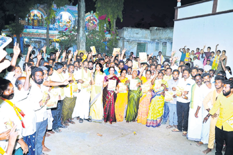 బుక్కరాయసముద్రం, డిసెంబరు 3: మళ్లీ చంద్రబాబు ముఖ్యమంత్రి అయితేనే రాష్ట్ర అభివృద్ధి సాధ్యమని శింగనమల నియోజకవర్గ ఇనచార్జి బండారు శావణీశ్రీ అన్నారు. ఆదివారం మండల పరిధిలోని సిద్దరాంపురంలో బాబు ష్యూరిటీ ... భవిష్యత్తు గ్యారెంటీ కార్యక్రమం నిర్వహించారు. రచ్చబండ నిర్వహించి.. టీడీపీ అమలు చేయబోయే పథకాలపై ప్రజలకు అవగాహన కల్పించారు. అనంతరం ఇంటింటికి వెళ్లి ఆ పథకాలను వివరించారు. కార్యక్రమంలో టీడీపీ నేతలు జిల్లా ఉపాధ్యాక్షుడు పసుపుల హనుమంతురెడ్డి, నియోజకవర్గం టీడీపీ నేత బండారు రవికుమార్, బండారు లీలావతి, పొడరాళ్ల రవీంద్రా, జీసీబాబు, పెద్దప్ప, ఓబులపతి పాల్గొన్నారు