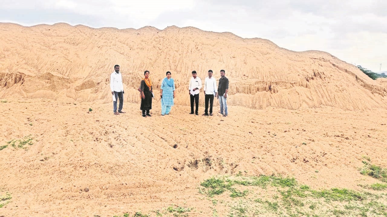 కణేకల్లు, జూలై 20: మండల పరిధిలోని రచ్చుమర్రి సమీపంలో వేదవతి హగరి నది నుంచి అధికార పార్టీకి చెందిన మాజీ ఎమ్మెల్యే ఒకరు భారీగా ఇసుకను దోచే ప్రయత్నం చేశారు. ఇసుకను అక్రమంగా తవ్వి నిల్వ చేసినట్లు అధికారులు గుర్తించారు. ఇసుక తవ్వకాలకు అనుమతి ఉందని స్థానికులను నమ్మించి.. 20 రోజులపాటు ఇసుకను తోడి సమీపంలో నిల్వ ఉంచారు. విషయం తెలుసుకున్న మైన్స అండ్ జియాలజీ అధికారులు రెండు రోజుల క్రితం అక్కడికి వెళ్లి ఇసుక గుట్టలను చూసి అవాక్కయ్యారు. అసిస్టెంట్ డైరెక్టర్ విజయలక్ష్మి ఆధ్వర్యంలో 12,786 క్యూబిక్ మీటర్ల ఇసుక నిల్వలను, ఒక ఎక్స్కవేటర్ను (హిటాచీ) సీజ్ చేశారు. గ్రామస్థులను విచారించి, ఇసుక తవ్వకాల వెనుక కణేకల్లు మండలంలోని హనకనహాళ్కు చెందిన శ్రీకాంతరెడ్డి, గురునాథ్రెడ్డి, కేశవరెడ్డి ప్రమేయం ఉన్నట్లు గుర్తించారు. ఈ విషయంపై కలెక్టర్కు పూర్తిస్థాయి నివేదిక ఇస్తామని మైన్స అండ్ జియాలజీ అధికారులు గురువారం తెలిపారు. రెండు రోజులపాటు ఈ విషయాన్ని గుట్టుగా ఉంచిన అధికారులు, గురువారం ఫొటోలను మీడియాకు విడుదల చేయడం గమనార్హం. ఇసుక దందా వెనుక రాయదుర్గం ఎమ్మెల్యే కాపు రామచంద్రారెడ్డి, అనంతపురం మాజీ ఎమ్మెల్యే గురునాథరెడ్డి ప్రమేయం ఉన్నట్లు స్పష్టమైందని టీడీపీ పొలిట్ బ్యూరో సభ్యులు కాలవ శ్రీనివాసులు అన్నారు. రచ్చుమర్రి వద్ద అధికారిక రీచ లేకపోయినా నెలల తరబడి ఇసుకను తవ్వుతున్నారని, టిప్పర్లు, లారీల్లో కర్ణాటకకు తరలించి సొమ్ము చేసుకుంటున్నారని అన్నారు. ఇప్పటికైనా అధికారులు వారిపై కఠిన చర్యలు తీసుకోవాలని డిమాండ్ చేశారు.