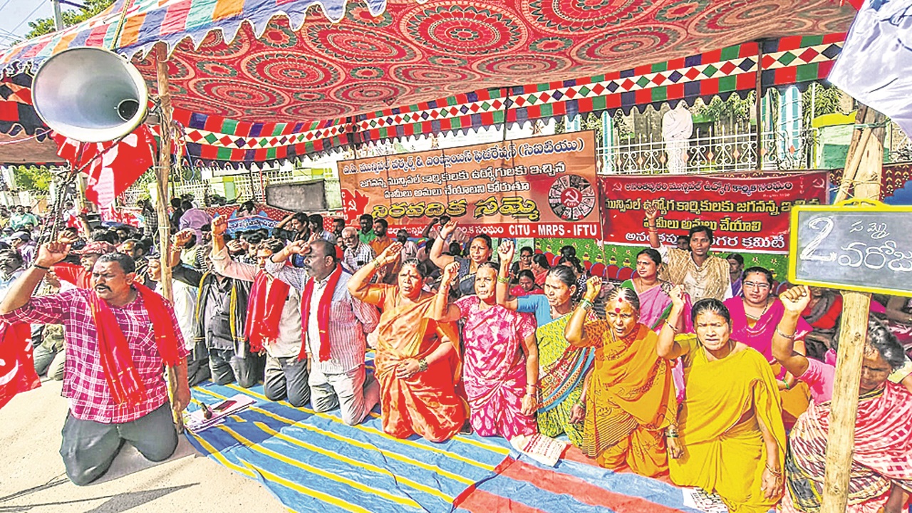 అనంతపురం క్రైం, డిసెంబరు 27: నగరపాలిక పరిధిలో మున్సిపల్ కార్మికులు చేపట్టిన సమ్మె బుధవారం రెండో రోజు కొనసాగింది. కార్పొరేషన కార్యాలయం ఎదుట మున్సిపల్ వర్కర్స్ యూనియన రాష్ట్ర అధ్యక్షుడు నాగభూషణం ఆధ్వర్యంలో కార్మికులు మోకాళ్లపై నిలబడి నిరసన తెలిపారు. కార్మికులను ప్రభుత్వం వెంటనే రెగ్యులరైజ్ చేయాలని, సమస్యలను పరిష్కరించాలని డిమాండ్ చేశారు. కార్మికుల సమ్మెకు టీడీపీ రాష్ట్ర కార్యదర్శి దేవళ్ల మురళి, క్రిస్టియన మైనార్టీ సెల్ రాష్ట్ర అధ్యక్షుడు ఈటె స్వామిదాస్, టీఎనటీయూసీ జిల్లా అధ్యక్షుడు పోతుల లక్ష్మీనరసింహులు, సీపీఎం జిల్లా నాయకురాలు సావిత్రి, సీఐటీయూ నగర కార్యదర్శి వెంకటనారాయణ, టీఎనటీయూసీ నగర అధ్యక్షుడు పూల బాషా, టైలర్ యూనియన అధ్యక్షుడు ముత్యాలు, భవన నిర్మాణ కార్మికుల సంఘం అధ్యక్షుడు మంజుల నారాయణ, సుధాకర్, నవీన తదితరులు మద్దతు తెలిపారు.