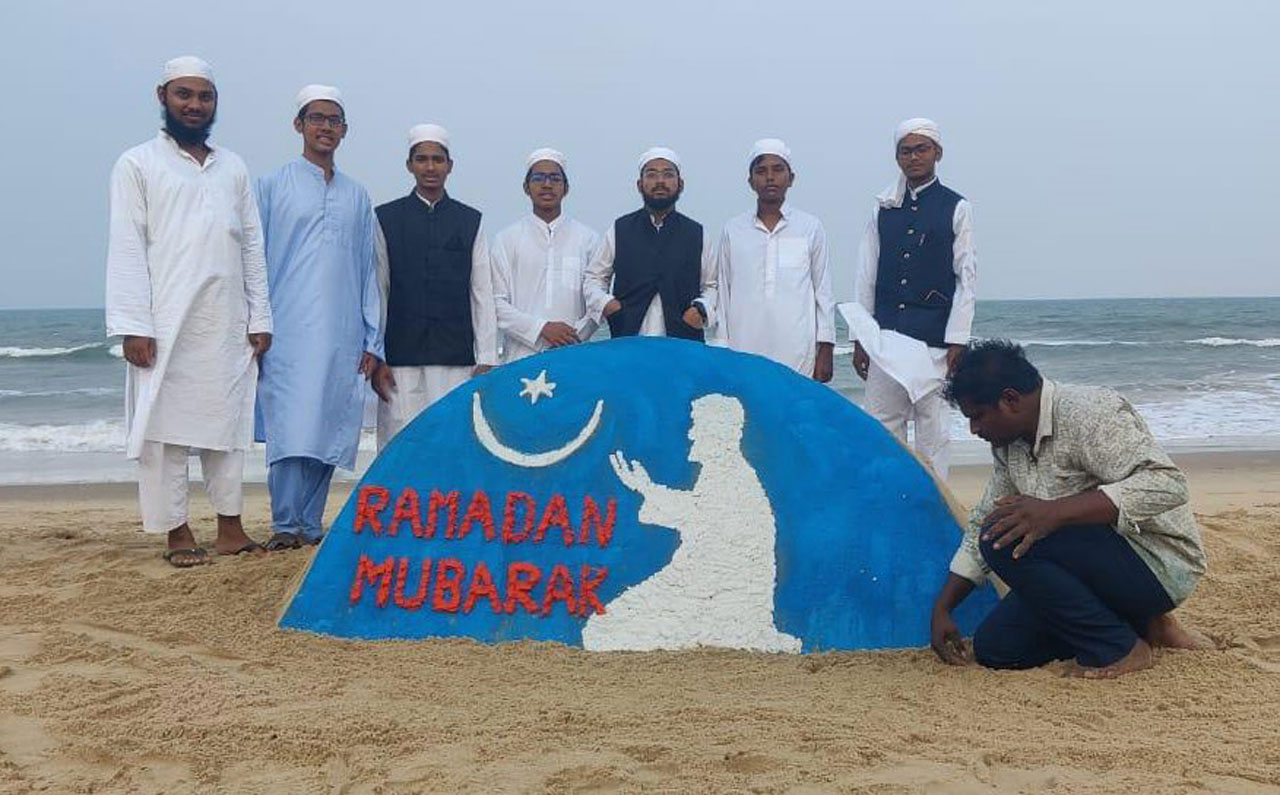 చిల్లకూరు మండలం ఏరూరుకు చెందిన సైకతశిల్పి మంచాల సనత్కుమార్ శనివారం రంజాన్ పండుగ సందర్భంగా ముస్లింలకు శుభాకాంక్షలు తెలుపుతూ గ్రామ సమీపంలోని సముద్ర తీరప్రాంతంలో సైకతశిల్పాన్ని రూపొందించారు. ముస్లింలంతా సుఖసంతోషాలతో ఉండాలని ఆకాంక్షిస్తూ దీన్ని రూపొందించానన్నారు.