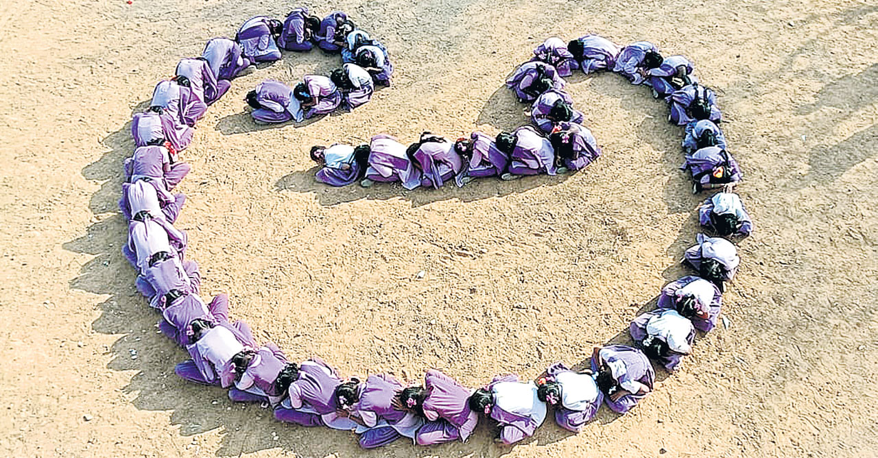 కల్లివెట్టు ఉన్నత పాఠశాల విద్యార్థినులు సోమవారం పాఠశాల ఆవరణంలో అ అక్షర ఆకృతిలో భాషాభిమానాన్ని చాటుకున్నారు.