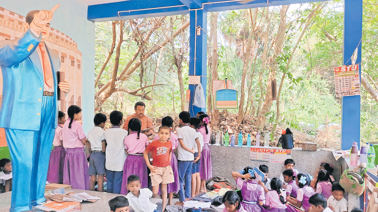 నడిగాడిలో అంబేడ్కర్ విగ్రహం వద్ద విద్యార్థులకు కొనసాగుతున్న బోధన
