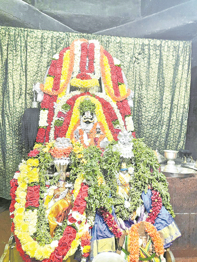 కోరుకొండ, మార్చి4: కోరుకొండ శ్రీ లక్ష్మినరసిం హస్వామి దివ్య కల్యాణ మహోత్స వాలు రెండో రోజు శనివారం వైభవంగా సాగాయి. ఉదయం స్వామి వారికి ప్రత్యేక ఆరాధన, అనంతరం భక్తు లకు సర్వదర్శనం, తదుపరి గ్రామ బలిహరణ, 9 గంటలకు సేవాకాలం,తీర్థ ప్రసాద గోష్టి, సర్వదర్శనం, రాత్రి గ్రామ బలిహరణ నిర్వహించారు. కొండ దిగువన ప్రతిష్ఠించబడిన లక్ష్మినరసింహ స్వామి.. కొండపైన స్వయంభూగా వెలిసిన లక్ష్మినరసింహ స్వామి,కొండ మధ్య గల శ్రీ భూ సమేత అనంత పద్మనాభ స్వామి శ్రీ రంగరాజ స్వామి వార్లను భక్తులు వేలాదిగా తరలివచ్చి దర్శించుకున్నారు. మూడో రోజు భక్తజనం పోటెత్తారు. కొండ భక్తులతో కిటకిటలాడింది.అన్నవరం దేవస్థానం అధికారులు ప్రత్యేక ఏర్పాట్లు చేశారు. స్వామి, అమ్మవారు ప్రత్యేక అలంకరణలో భక్తులు దర్శించుకున్నారు. స్వామి వారి పాదాల వద్ద పానకాలు పోసి కొబ్బరికాయలు కొట్టి మొక్కులు చెల్లించుకున్నారు.దిగువ దేవస్థానం ధ్వజస్థంభం వద్ద నూనె, నెయ్యి దీపాలతో వెలిగిం చారు. కొండపొడవునా మెట్లకు ఇరువైపులా దీపాలు వెలిగించారు. ఉత్సవాల్లో భాగంగా శనివారం రాత్రి స్వామి వారి కళావేదికపై రాజమహేంద్రవరానికి చెందిన ప్రసాద్ నృత్య కళానికేతన్ విద్యార్థులు భరతనాట్యప్రదర్శన ఆకట్టుకుంది.