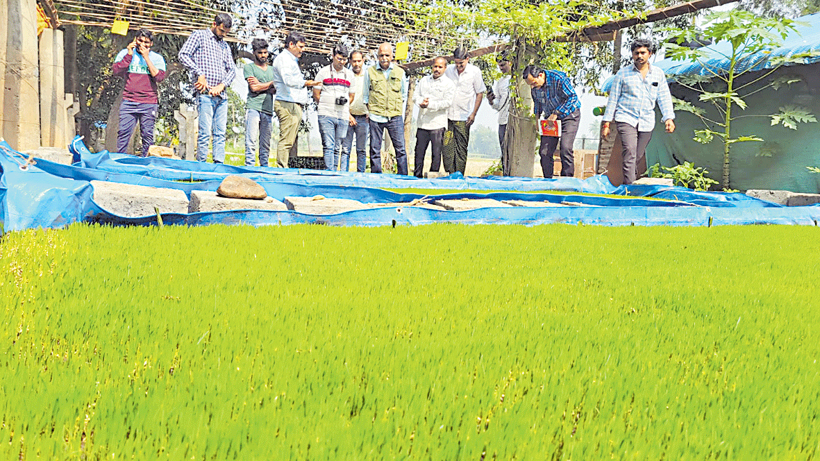 కడియం, డిసెంబరు 29: ఉభయగోదావరి జిల్లాలో రైతులు చేపట్టిన ప్రకృతి వ్యవసాయం దేశానికే గర్వకారణమని ఉత్తరప్రదేశ్ రాష్ట్ర జీడీఎస్ ఎన్జీవోస్ బృంద సభ్యుడు అమితాబ్మిషార అన్నారు. శుక్రవారం మురమండ పాడిరైతు సాగు చేస్తున్న ప్రకృతి వ్యవసాయ, పశుక్షేత్రాలను పరిశీలించారు. ప్రకృతి సేద్యంపై రెండు రోజుల పర్యటనలో భాగంగా ఉమ్మడి తూర్పు, పశ్చిమగోదావరి జిల్లాల్లో పర్యటించిన ఉత్తరప్రదేశ్కి చెందిన జీడీఎస్ ఎన్జీవోస్ అమితాబ్మిషారా, సూర్యప్రతాప్సిన్హా, జయశంకర్ జోష్, భాస్కర్సిన్హా, ఓంప్రకాష్రాయ్ బృందం మురమండకు చెందిన పాడి రైతు మరిడి సత్యనారాయణ ప్రకృతి వ్యవసాయ క్షేత్రాన్ని సందర్శించారు. ప్రకృతి సేద్యంపై జిల్లా ప్రకృతి వ్యవసాయ ప్రాజెక్టు డైరెక్టర్ బి.తాతారావుతో కలిసి క్షేత్రస్థాయిలో పరిశీలించారు. సత్యనారాయణ మాట్లాడుతూ తాము పెంచుతున్న 80 గోవుల ద్వారా ఘన, ద్రవ, జీవామృతాలు తయారుచేసి వాటిని పంటకు వాడుతూ పూర్తిగా ప్రకృతి వ్యవసాయం సేద్యం చేస్తున్నామన్నారు. రసాయనిక ఎరువులతో పండించిన పంటతో పోలిస్తే ప్రకృతి వ్యయసాయంలో పంటకు మూడు బస్తాల మాత్రమే వ్య త్యాసం ఉందన్నారు. ఈ రకం వ్యవసాయాన్ని ఉత్తరప్రదేశ్లో ప్రవేశపెట్టనున్నట్టు బృంద సభ్యులు తెలిపారు.