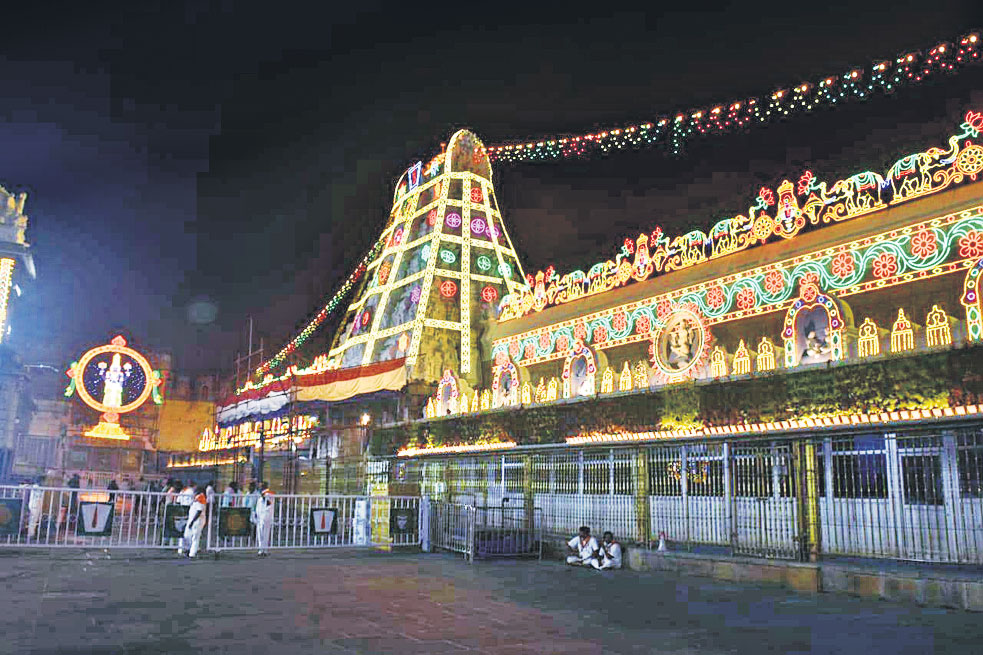 తిరుమల, డిసెంబరు 21 (ఆంధ్రజ్యోతి): వైకుంఠ ఏకాదశి సందర్భంగా శుక్రవారం అర్ధరాత్రి తిరుమల శ్రీవారి ఆలయంలో వైకుంఠద్వారాలు తెరుచుకోనున్నాయి. 12 గంటల నుంచి 1.45 గంటల వరకు ధనుర్మాస కైంకర్యాలు నిర్వహించిన అనంతరం వీఐపీ బ్రేక్ దర్శనాలు మొదలుకానున్నాయి. ఆ తర్వాత సర్వదర్శన భక్తులను దర్శనానికి అనుమతించనున్నారు. జనవరి 1వ తేదీ వరకు 10 రోజుల పాటు భక్తులకు వైకుంఠద్వార దర్శనాలను కల్పించనున్నారు. ఇందులో భాగంగా ఇప్పటికే ఆన్లైన్ ద్వారా రూ.300 ప్రత్యేక ప్రవేశ దర్శనం, శ్రీవాణి టికెట్లను కేటాయించిన టీటీడీ శుక్రవారం ఉదయం 10 గంటల నుంచి తిరుపతిలోని తొమ్మిది ప్రాంతాల్లో ఏర్పాటు చేసిన 90 కౌంటర్ల ద్వారా ఉచిత స్లాటెడ్ సర్వదర్శన టోకెన్లను జారీ చేయనుంది. పదిరోజుల కోటా పూర్తయ్యే వరకు టోకెన్లను జారీ చేస్తారు. అయితే గురువారం సాయంత్రం నుంచే కొన్ని కౌంటర్ల వద్ద భక్తుల రద్దీ పెరిగిన నేపథ్యంలో శుక్రవారం వేకువజాము నుంచే టోకెన్లను జారీ చేయాలనే ఆలోచనలో టీటీడీ ఉంది. దీనికి తగిన విధంగా కౌంటర్ల వద్ద కంప్యూటర్లను, సిబ్బందిని టీటీడీ ఐటీ విభాగం గురువారం రాత్రికే సిద్ధం చేసింది. వైకుంఠ ఏకాదశి సందర్భంగా తిరుమల క్షేత్రాన్ని విద్యుత్, పుష్పాలంకరణలతో సర్వాంగ సుందరంగా తీర్చిదిద్దుతున్నారు.