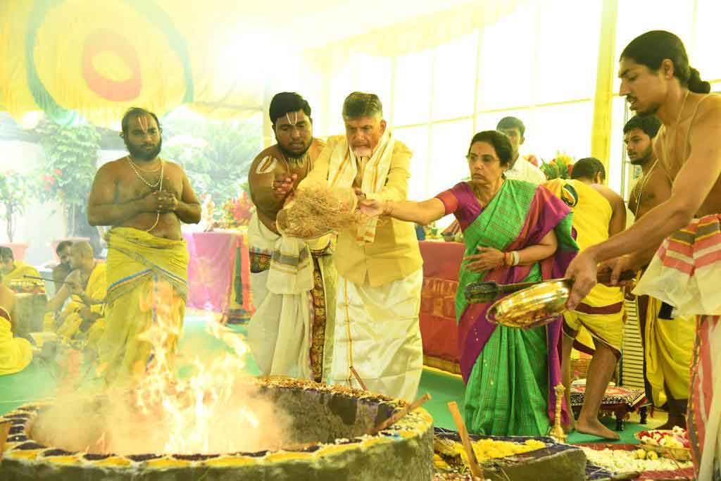 తెలుగుదేశం పార్టీ జాతీయ అధ్యక్షులు , మాజీ ముఖ్యమంత్రి నారా చంద్రబాబు నాయుడు ( Nara Chandrababu Naidu ) ఉండవల్లి నివాసంలో నేడు చండీయాగం, సుదర్శన నారసింహ హోమం నిర్వహించారు. నేటి నుంచి మూడు రోజుల పాటు జరిగే శతచండీ పారాయణ ఏకోత్తర వృద్ధి మహాచండీ యాగం, సుదర్శన నారసింహ హోమంలో భాగంగా మొదటి రోజు యజ్ఞ క్రతువులు నిర్వహించారు.