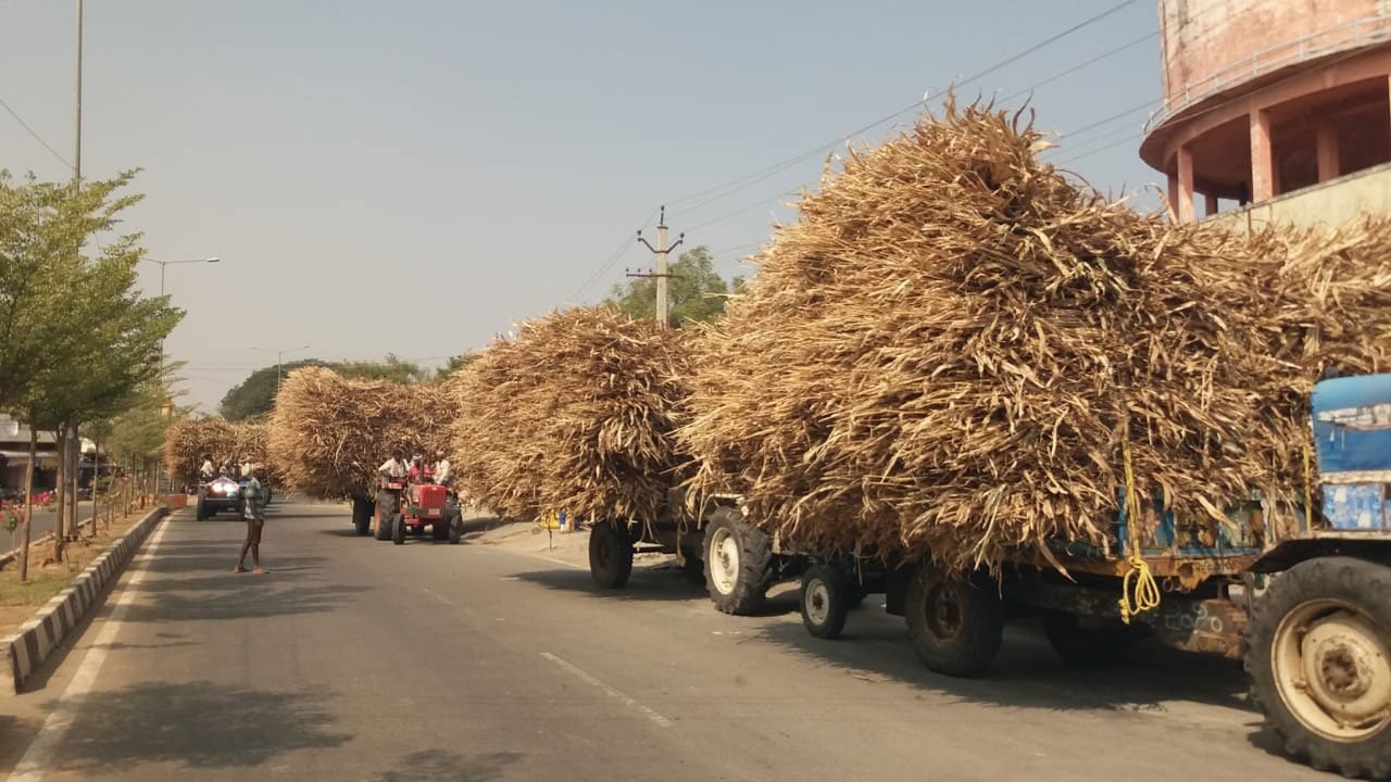 జమ్మలమడుగు, జనవరి 29: జమ్మలమడుగు మండలంలో ఈసారి వరిసాగు కంటే అధికంగా జొన్న, మొక్కజొన్న పంటలు సాగు చేశారు. గతంలో జమ్మలమడుగు మండలంలో పలు గ్రామాల్లో వరిసాగు అధికంగా సాగు చేసేవారు. అధిక వర్షాల వలన వరి పంట సాగు చేసే రైతులకు ధరలు పెరిగి గిట్టుబాటు లేక జొన్నపంట సాగు చేశారు. దీంతో పంట దిగుబడి వచ్చి సుమారు నెల రోజుల నుంచి జొన్న పంట కోత పెట్టారు. అలాగే జమ్మలమడుగు నియోజకవర్గంలోని పలు గ్రామాల నుంచి గొరిగెనూరు, ధర్మాపురం, సలివెందుల, దేవగుడి, సుగుమంచిపల్లె తదితర ప్రాంతాల నుంచి రైతులు జొన్నచొప్పను కొనుగోలు చేస్తున్నారు. ట్రాక్టర్ జొన్నచొప్ప (గడ్డి) రూ.9 వేల నుంచి రూ.10 వేల వరకు ఇంటికి చేరుకునేందుకు ఖర్చు అవుతోందని రైతులు తెలిపారు. అందులో భాగంగా రెండు రోజుల నుంచి జొన్నచొప్ప ట్రాక్టర్లు పట్టణంలో జోరుగా గ్రామాలకు తరలిస్తున్నారు.
