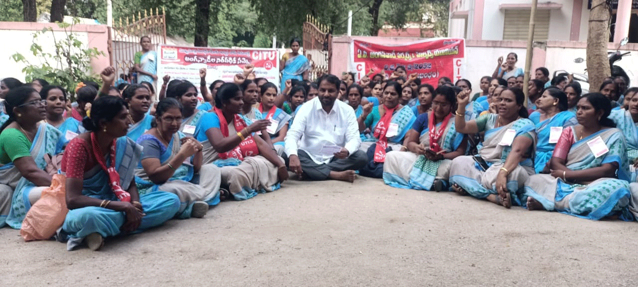 రైల్వేకోడూరులో శాంతియుతంగా నిరసనలు తెలుపుతున్న అంగనవాడీలపై ఎమ్మెల్యే కొరముట్ల శ్రీని వాసులు దౌర్జన్యాలు నశించాలని సీఐటీయూ నాయకురాళ్లు ద్వజమె త్తారు.
