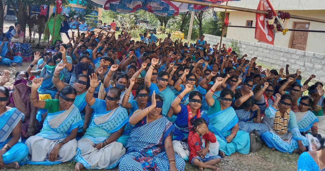 బి.కొత్తకోట డిసెంబర్ 30 : బి.కొత్తకోట ఐసీడీఎస్ ప్రాజెక్టు కార్యాల యం ఎదుట అంగన్వాడీ కార్యకర్తలు శనివారం 19వ రోజు కళ్లకు గంతలు కట్టుకొని నిరసన తెలిపారు. రాష్ట్ర ప్రభుత్వం మొండి వైఖరి వీడాలని, అంగన్వాడీల న్యాయమైన కోర్కెలను పరిష్కరించాలని, కనీస వేతనం రూ. 26 వేలు ఇవ్వాలని, ప్రభుత్వ ఉద్యోగులుగా గుర్తించాలని నినాదాలు చేశారు. ఈ సందర్బంగా అంగన్వాడీ ప్రాజెక్టు యూనియన నాయకులు శ్రీవాణి, కుమారిలు మాట్లాడుతూ ఓ శాఖ ఉద్యోగులు తమ డిమాండ్ల పరిష్కారం కోసం సమ్మె చేస్తుంటే వారి సమస్యలను పరిష్కరించాల్సిందిపోయి, మరో శాఖ ఉద్యోగులను వాడుకొని సమ్మెను అణిచివేయాలని చూడడం ఎంత వరకు సమంజసమన్నారు. అంగ న్వాడీ కేంద్రాల తాళాలను పగుల కొట్టించి సచివాలయ ఉద్యోగుల చేత కేంద్రాలను నడపాలని చూడడం దుర్మార్గమన్నారు. ఇప్పటికైనా రాష్ట్ర ప్రభుత్వం ఒక మెట్టు దిగితే మా యూనియన్లు నాలుగు మెట్లు దిగడా నికి సిద్ధంగా ఉన్నారన్నారు. కార్యక్రమంలో పీటీఎం, బి.కొత్తకోట, ముల కలచెరువు మండలాలకు చెందిన అంగన్వాడీలు పాల్గొన్నారు.
