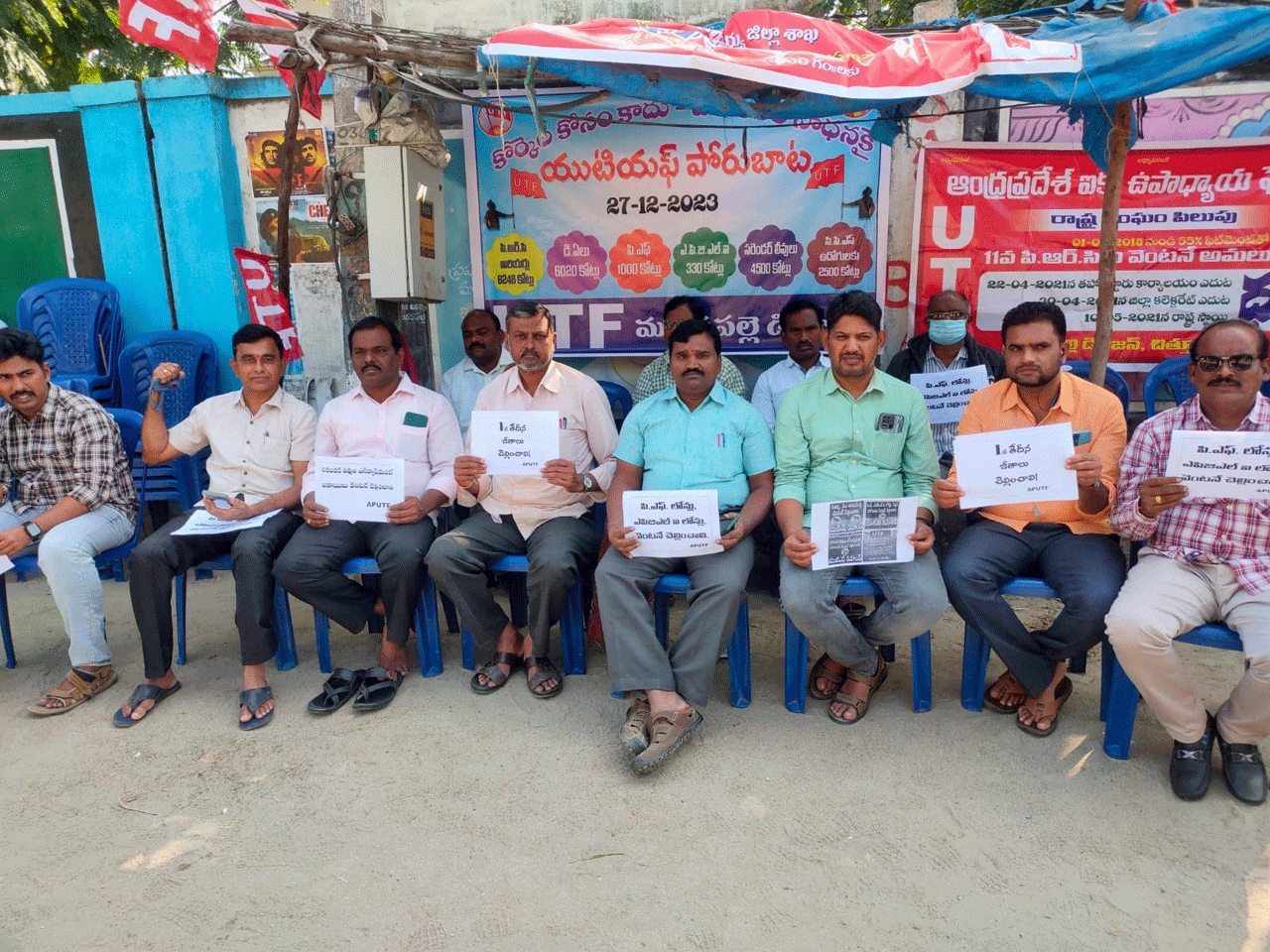 మదనపల్లె అర్బన, డిసెంబరు 27: ఉద్యోగుల, ఉపాధ్యాయుల, కార్మికులకు రావాల్సిన బకా యిలు వెంటనే చెల్లాంచాలని ఏపీ ఐక్య ఉపా ధ్యాయ ఫెడరేషన నాయకులు డిమాండ్ చేశా రు. బుధవారం స్థానిక తహసీల్దార్ కార్యాల యం ఎదుట యూటీఎఫ్ నాయకులు సమస్యల పరిష్కారం కోసం నిరసన చేపట్టారు. ఈ సంద ర్భంగా జిల్లాకార్యదర్శి పురంవెంకటరమణ మాట్లాడుతూ యూటీఎఫ్ రాష్ట్రశాఖ పిలుపు మేరకు ప్రతి డివిజనలో యుటీ ఎఫ్ పోరుబాట కార్యక్రమంలో భాగంగా మదనపల్లెలో నాయకులు నిరసన తెలిపారన్నా 18 వేలకోట్లు పైగా ఉద్యోగులకు బకాయిలు చెల్లించవ లసి ఉందని వెంటనే వాటిని చెల్లించడానికి చర్యలు తీసుకోవాలని పోరుబాట చేపట్టామ న్నారు. కార్యక్రమంలో యూటీఎఫ్ గౌరవాధ్యక్షుడు సుధాకర్నాయుడు, భాస్కర్రెడ్డి, ఆది నారాయణ, డివిజన కన్వీనర్ సుధాకర్, రూరల్ అధ్యక్షుడు గాలిరవీంద్ర, ప్రధానకార్యదర్శి మల్లేశ్వరబాబు, డివిజన నాయకులు విజయకుమార్, శైలేష్, అంజాద్, గంగులప్ప, సురేంద్ర, వెంకటయ్య, పాల్గొన్నారు.