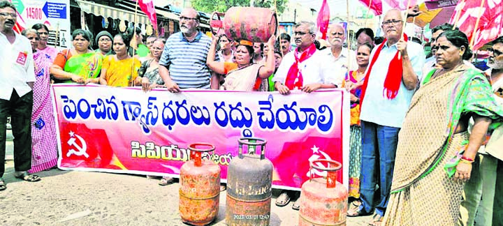మోదీ ప్రభుత్వం ప్రతి ఇంటిలో గ్యాస్ బాంబు పేల్చిందని సీపీఎం రాష్ట్ర కార్యదర్శి వర్గ సభ్యుడు సీహెచ్ బాబూరావు అన్నారు. పెరిగిన గ్యాస్ ధరలకు వ్యతిరేకంగా సీపీఎం ఆధ్వర్యంలో బీసెంట్ రోడ్డు మహంతి చేపల మార్కెట్ సమీపంలో నిరసన కార్యక్రమం చేపట్టారు. గ్యాస్ బండ నెత్తిన పెట్టుకుని మహిళలు మోదీ ప్రభుత్వ దుర్మార్గంపై ఆగ్రహం వ్యక్తం చేశారు.