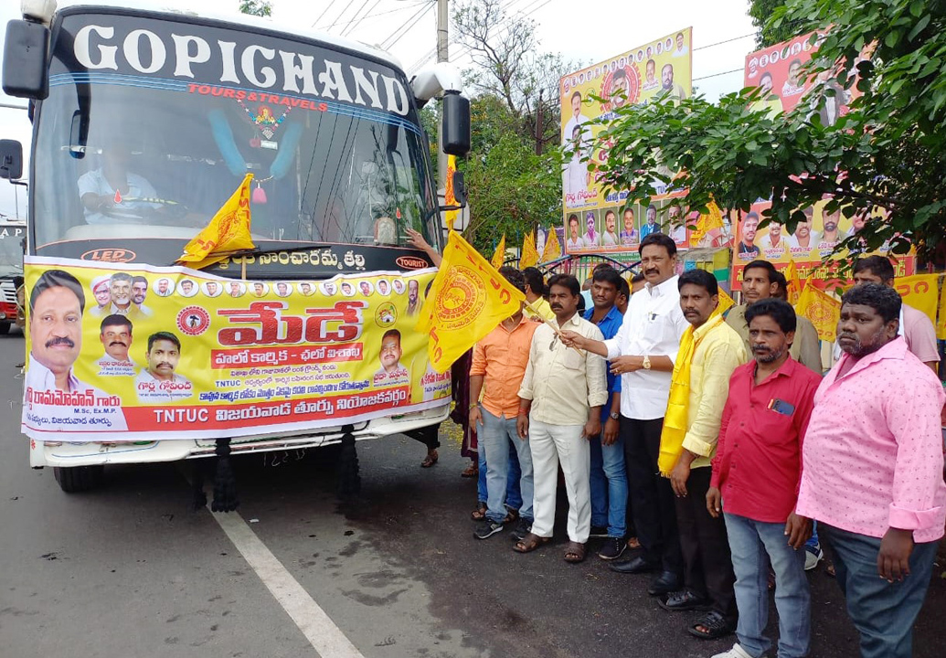 రాణిగారితోట: వైసీపీ పాలనలో ఉపాధి దొరక్క అన్ని రంగాల కార్మికుల కుటుంబాలు ఇబ్బందులు పడుతున్నాయని ఎమ్మెల్మే గద్దె రామ్మోహన్ అన్నారు. రాష్ట్రంలో ముఠాకార్మికులు, భవన, ఆటో కార్మికులు ఉపాధి లేకుండా ఆకలితో అలమటిస్తున్నారని ఆవేదన వ్యక్తం చేశారు. మే డే సందర్భంగా వారధి ఆటోస్టాంట్ వద్ద టీఎన్టీయూసీ జెండాను ఆయన ఆవిష్కరించారు. గాజువాకలో టీఎన్టీయూసీ బహిరంగ సభకు విజయవాడ నుంచి వెళ్తున్న బస్సును జెండా ఊపి ప్రారంభించారు. కార్మికులందరూ ఐక్యంగా ఉండి వచ్చే ఎన్నికల్లో జగన్కు వ్యతిరేకంగా ఓట్లు వేసి బుద్ధి చెప్పాలన్నారు.