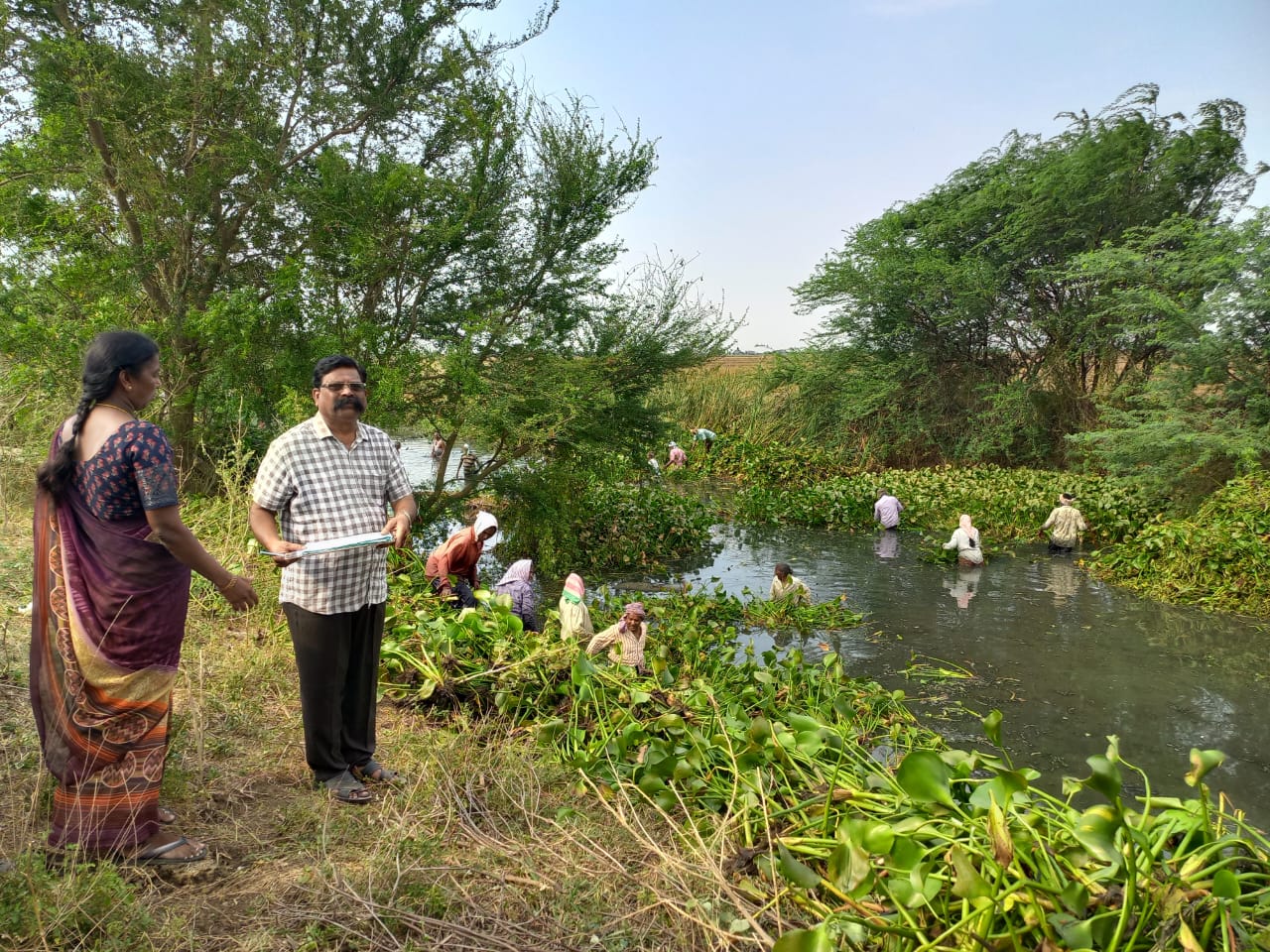 ఉపకాలువల్లో దట్టంగా అలముకున్న గుర్రపుడెక్క, తూటుకాడవల్ల సాగునీటి సరఫరాకు తీవ్ర అడ్డంకి ఏర్పడుతుందని, ఉపాధిహామీ కింద పనులు చేపట్టడం ద్వారా చివరి భూముల వరకు సమృద్ధిగా సాగునీరు అందుతుందన్నారు. ఖరీఫ్ సీజను ప్రారంభం కానున్న దృష్ట్యా పొలాల్లో కెళ్లే పంటబోదెలను అభివృద్ధి పరచుకు నేలా రైతులను చైతన్యపరచాలని సూచించారు. పీల్డ్ అసిస్టెంట్ వెంకటరమణ పాల్గొన్నారు.