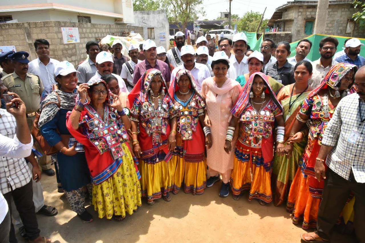 మైలవరం రూరల్, జూన్ 6: ప్రతి కుటుంబానికి రక్షితనీటిని సరిపడా అందించాలని కేంద్ర జలజీవన్ మిషన్ కార్యదర్శి విని మహజన్ అన్నారు. కేంద్ర జలజీవన్ మిషన్ కింద ఎంపికైన పొందుగలలో ఆమె పర్యటించారు. పొందు గలకు రూ.1.25కోట్లు మంజూరుకాగా, రూ.55లక్షలతో నిర్మించిన రక్షితనీటి ట్యాంకును కలెక్టర్ దిల్లీరావు, సర్పంచ్ కోటమ్మ, ఎంపీపీ ఇస్లావత్ ప్రసన్నరాణి లతో కలిసి ప్రారంభించారు. గ్రామంలో ఇంటింటికి మంచినీటి కుళాయిలు, పారిశుధ్య వ్యవస్థను, విజయవాహిని చారిటబుల్ ట్రస్టు, టాటా ట్రస్టు సౌజన్యంతో ఏర్పాటు చేసిన ఐవోడీ సిస్టం, క్లోరినేషన్ ప్రక్రియను పరిశీలించి పలు సూచనలు చేశారు. గిరిజన తండాలోని ముత్యాలమ్మ దేవాలయాన్ని సందర్శించి పూజలు నిర్వహించారు. అనంతరం ఏర్పాటు చేసిన సభలో ఆమె మాట్లాడుతూ నీటిని పొదుపుగా వినియోగించాలని, వృథాను అరికట్టాలని సూచించారు. ఈసందర్భంగా గ్రీన్ అంబాసిడర్లు, విలేజ్ వాటర్ శానిటేషన్ కమిటీని విధుల నిర్వహణ, పనిచేసే విధానాన్ని అడిగి తెలుసుకున్నారు. ఇంకుడు గుంతలు తవ్వుకొని భూగర్భజలాలు పెరిగేలా చూడాలని, పచ్చదనం, పారిశుధ్యంపై ప్రత్యేక శ్రద్ధ తీసుకోవాలని ఆదేశించారు.