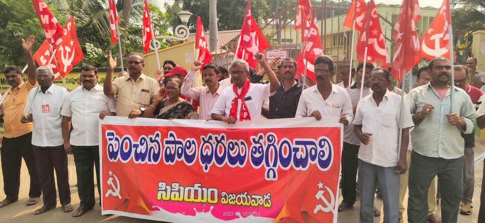 పెంచిన పాల ధరలు తక్షణమే ఉప సం హరించుకోవాలని పాల ఫ్యాక్టరీ వద్ద ఆందోళనలో సీపీఐ నాయకులు డిమాండ్ చేశారు. కేంద్ర, రాష్ట్ర ప్రభుత్వాలు రవాణా ఖర్చులు పెంచడం, జీఎస్టీలు విధించడం కారణంగా పాల ఉత్తత్తిపై భారం పెరిగిందని సీపీఐ నగర కార్యదర్శి జి.కోటేశ్వరరావు అన్నారు. ఏడాదిలో పాలధరను ఆరు రూపా యలు పెంచారని, రాబోయే రోజుల్లో సామా న్యులు పాలు కొనుగోలు చేయాలేని స్థితిని కేంద్ర, రాష్ట్ర ప్రభుత్వాలు తెచ్చాయని ఆయన ఆగ్రహం వ్యక్తం చేశారు. పెంచిన పాల ధరలను తగ్గించి సామాన్యులకు అందు బాటులోకి తీసుకురావాలని, లేని పక్షంలో పోరాటం ఉధృతం చేస్తామని కోటేశ్వరరావు హెచ్చరించారు. సీపీఐ నగర కార్యదర్శులు లంక దుర్గారావు, నక్క వీరభద్రరావు, కార్య దర్శి వర్గ సభ్యులు కేవీ భాస్కర్రావు, తాడి పైడయ్య, పంచదార్ల దుర్గాంబ తదితరులు పాల్గొన్నారు.