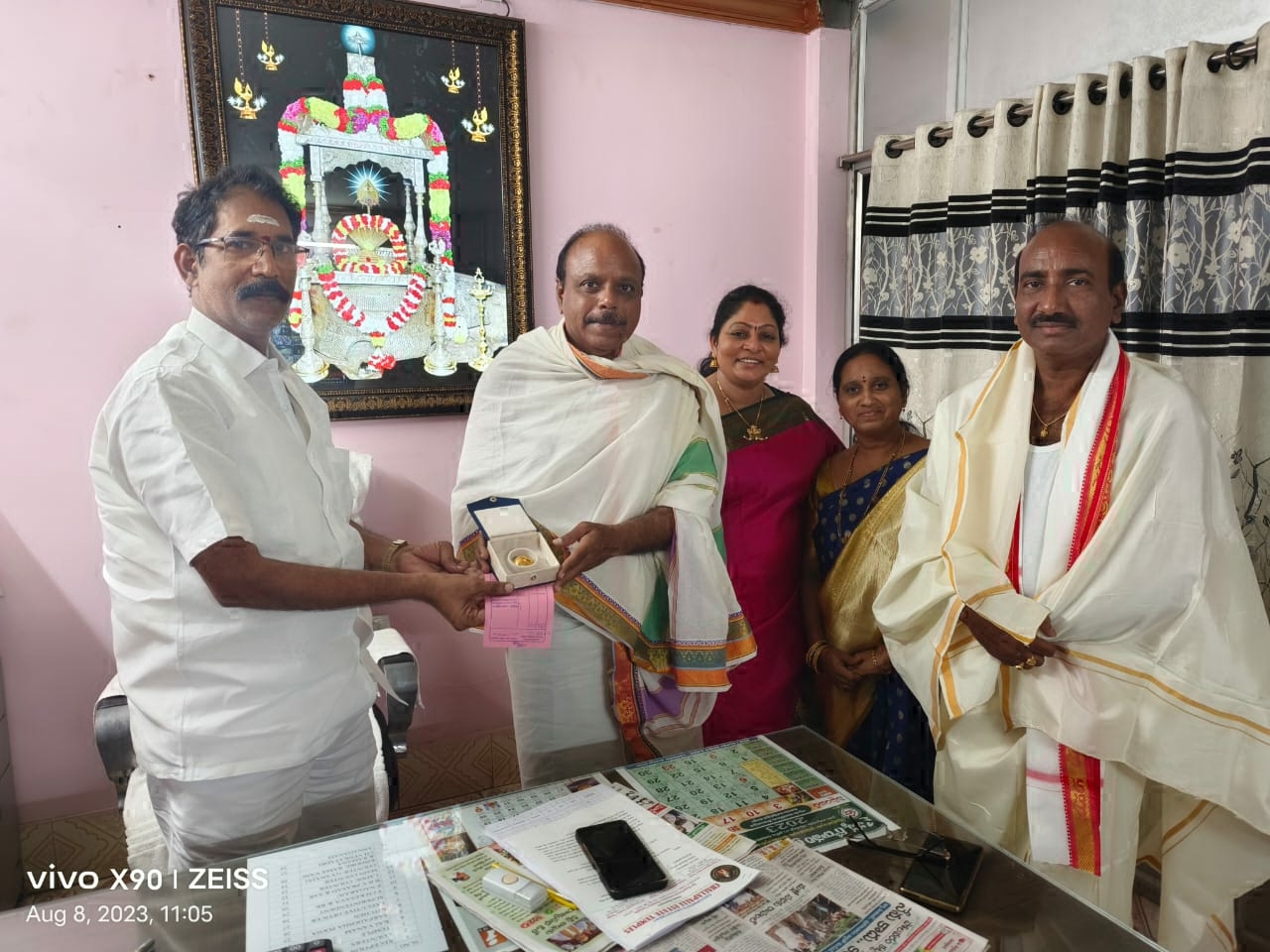 మోపిదేవి, ఆగస్టు 8 : మోపిదేవి సుబ్రహ్మణ్యేశ్వరస్వామికి చీరాల గ్రామానికి చెందిన ఎం.నాగేశ్వరరావు - అనిత దంపతులు 15 గ్రాముల 980 మిల్లిగ్రాముల బంగారపు ఆభరణాలను సమర్పించారు కుటుంబ సమేతంగా మంగళవారం స్వామివారిని దర్శించుకున్నారు. బంగారపు సూత్రాలు నాలుగు, నానుకోళ్లు రెండు ఆలయ ఈవో ఎన్.ఎ్స.చక్రధరరావుకు అందజేశారు. దాతలకు స్వామివారి ప్రసాదాలు అందించి శేషవస్త్రాలతో సత్కరించారు.