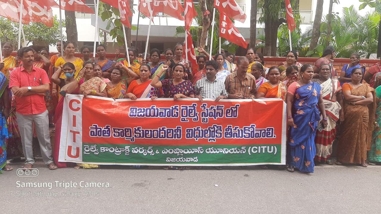 రైల్వేస్టేషన్, ఆగస్టు 1: రైల్వేస్టేషన్లో పద్మావతి రక్షక్ కాంట్రాక్ట్ సంస్థలు అక్రమంగా తొలగించిన పాత కార్మికులకు పనులు కల్పించి న్యాయం చేయాలని రైల్వే ఉన్నతాధికారులను 50వ డివిజన్ కార్పొరేటర్ బోయ సత్యబాబు కోరారు. రైల్వే కార్మికులు డీఆర్ఎం కార్యాలయం వద్ద మంగళవారం రైల్వేస్టేషన్లో పద్మావతి రక్షక్ కాంట్రాక్ట్ సంస్థలు అక్రమంగా తొలగించినందుకు నిరసన చేపట్టారు. ఈ సందర్భంగా ఆయన మాట్లాడుతూ కార్మికులను అక్రమంగా, చట్ట విరుద్ధంగా పని నుంచి కాంట్రాక్టర్లు ఆపేస్తే ప్రిన్సిపాల్ ఎంప్లాయర్గా రైల్వే ఉన్నతాధికారులు తగిన చర్యలను చేపట్టి కార్మికులకు న్యాయం చేసే అవకాశం ఉందన్నారు. ఎప్పటి నుంచో స్టేషన్ పనులను నమ్ముకుని పని చేస్తున్న కార్మికులకు మళ్లీ పని కల్పించడం న్యాయమని తెలిపారు. రైల్వే అధికారులు వెంటనే కార్మికులకు పని కల్పించే చర్యలు చేపట్టాలని కోరారు. శ్రామిక మహిళ జిల్లా కన్వీనర్ ఎ.కమల, యూనియన్ కార్యదర్శి ఈవీ నారాయణ పాల్గొన్నారు.