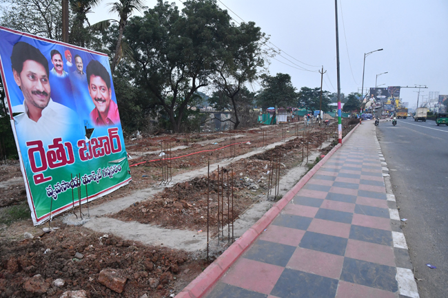 స్థానికుల డిమాండ్ మేరకు ఇక్కడ రైతుబజార్ ఏర్పాటుకు శ్రీకారం చుట్టారు. ఇంతవరకు బాగానే ఉన్నా.. దాని ఏర్పాటుకు జాతీయ రహదారిని ఎంచుకోవడమే వివాదాస్పదంగా మారింది. ఎన్హెచ్ ఫుట్ పాత్ను ఆనుకుని ఉన్న కొద్దిపాటి స్థలంలో దీని నిర్మాణం చేపడుతున్నారు. ఓవైపు జాతీయ రహదారి ఉండగా, మరోవైపు రైవస్ కాల్వ ఉంది. ఇలాంటి స్థలంలో రైతుబజార్ నిర్మాణం నిబంధనలకు విరుద్ధమే. ఎన్హెచ్తో పాటు ఇరిగేషన్ శాఖ అనుమతులు కూడా తీసుకోకుండా మార్కెటింగ్ శాఖ అధికారులు దీనిని నిర్మిస్తున్నారు. మార్కెటింగ్ శాఖ అధికారులపై రాజకీయ ఒత్తిళ్లు నెలకొనటంతో ఇష్టానుసారంగా నిర్మాణాలు చేపడుతున్నారు.