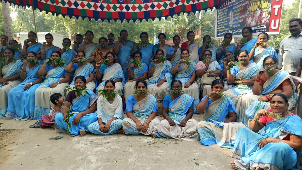 అంగన్వాడీల సమస్యల పరిష్కరించటంలో వైసీపీ ప్రభుత్వం ఘోరంగా విఫలమైందని సీఐటీయూ జిల్లా కార్యదర్శి కళ్లం వెంకటేశ్వరరావు అన్నారు. స్థానిక ఐసీడీఎస్ కార్యాలయం వద్ద గడ్డితింటూ అంగన్ వాడీలు వినూత్నంగా శనివారం నిరసన తెలిపారు.