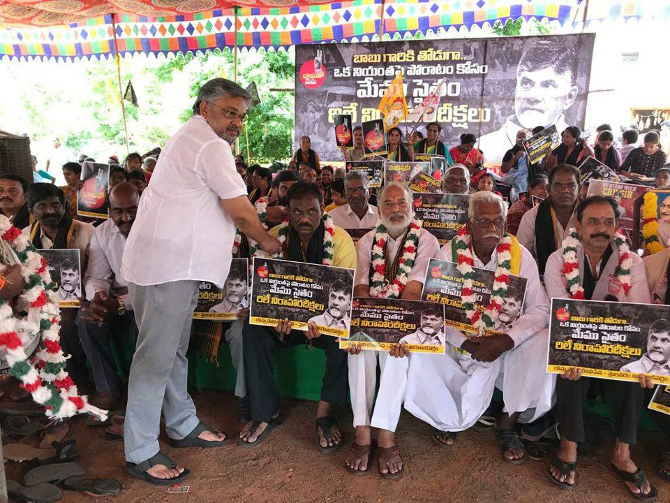 గొల్లపూడి: రాష్ట్రంలో జగన్ నియంతృత్వ పోకడల కారణంగా ఈసారి ఎన్నికల్లో వైసీపీ కేవలం తొమ్మిది సీట్లకు పరిమితం కావడం ఖాయమని టీడీపీ జిల్లా ఉపాధ్యక్షుడు బొమ్మసాని సుబ్బారావు జోస్యం చెప్పారు. బొమ్మసాని నివాసంలో సోమవారం నిర్వహిం చిన దీక్షలో 500 మంది పైగా ప్రజలు పాల్గొన్నారు. టీడీపీ నాయకుడు కాజ రాజ్ కుమార్ దండలు వేసి నిరహార దీక్షను ప్రారంభించారు. టీడీపీ, జనసేన, కమ్యూనిస్టుల సాయంతో ఓట్లు చీలకుండా చూసి వైసీపీ దుర్మార్గ పాలనను అంతమొందిస్తామని సుబ్బారావు అన్నారు. చెన్నుబోయిన చిట్టిబాబు, కొండపల్లి మాజీ సర్పంచ్ కొల్లి వెంకటే శ్వరరావు దీక్షను విరమింపజేశారు. మల్లెల శ్రీనివాస చౌదర్, అబ్దుల్ఖాదర్, గూడపాటి కృష్ణప్రసాద్, చిగురు పాటి శంకరరావు, వడ్లమూడి బ్రహ్మయ్య, నూతులపాటి శివరాం, దిరిశం నాగేశ్వరరావు, కరింకొండ బాలాజీ, రాయల లీలాప్రసాద్, జనసేన పార్టీ నేత కటకం ధర్మారావు, సత్యనారాయణమూర్తి పాల్గొన్నారు.