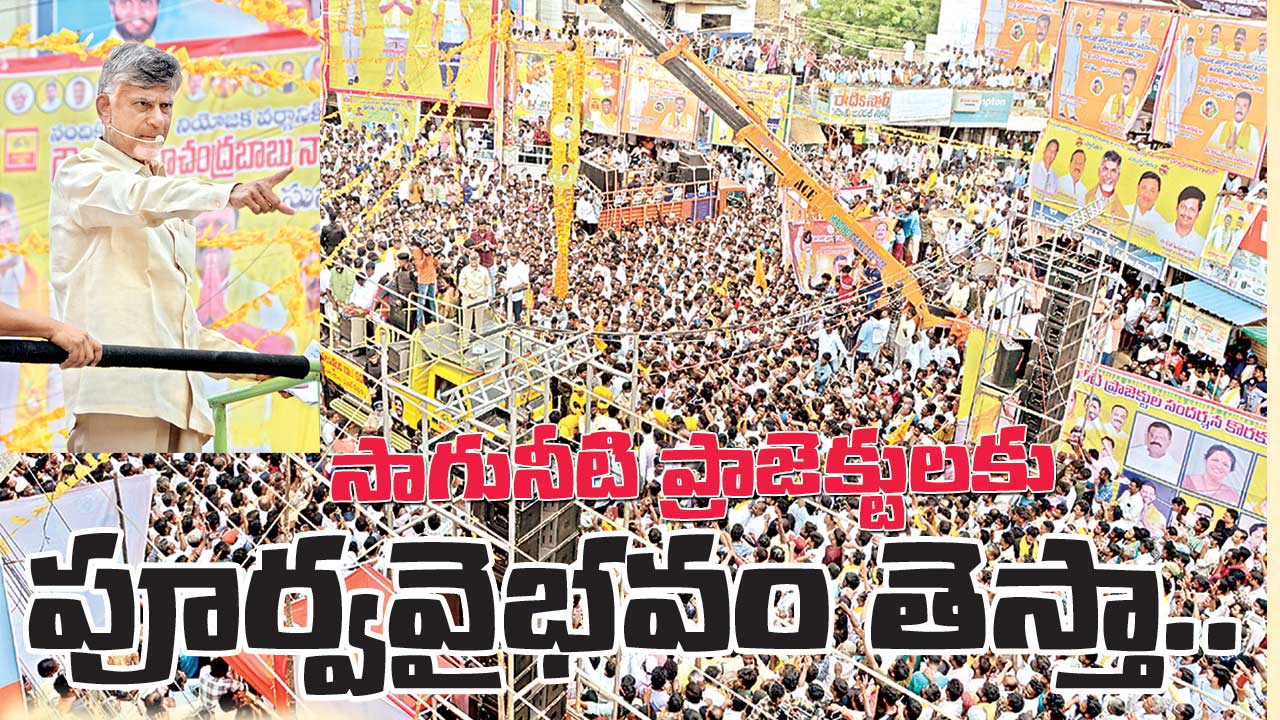 నంద్యాల, ఆగస్టు 1 (ఆంధ్రజ్యోతి)/నందికొట్కూరు: ‘సైకో జగన్ మోహన్ రెడ్డి ప్రభుత్వం రాయలసీమ ప్రాజెక్టులను నిర్వీర్యం చేసింది. కనీసం సాగునీటిని కూడా ఇవ్వలేకపోయిన జగన్ అసమర్థ సీఎంగా నిలిచిపోయాడు. ఆయన నాశనం చేసిన ప్రాజెక్టులన్నింటికీ పూర్వ వైభవం తీసుకొస్తా. కర్నూలు, నంద్యాల జిల్లాల ప్రజలు, రైతులకు బాసటగా నిలుస్తా...’ అంటూ మాజీ సీఎం, టీడీపీ అధినేత నారా చంద్రబాబు నాయుడు పేర్కొన్నారు. తాము అధికారంలోకి వస్తే సాగునీటి ప్రాజెక్టులకు పూర్వవైభవం తీసుకురావడమే కాకుండా సూపర్ సిక్స్ మేనిఫెస్టోతో అన్ని వర్గాల ప్రజలకు సంక్షేమ పథకాలు అందిస్తామన్నారు. ‘సాగునీటి ప్రాజెక్టుల విధ్వంసంపై యుద్ధభేరి’ పేరుతో చంద్రబాబు నంద్యాల నందికొట్కూరు నియోజకవర్గం నుంచి శ్రీకాకుళం జిల్లా పాతపేట వరకు యాత్ర చేపట్టారు. అందులో భాగంగా ఆయన మంగళవారం నందికొట్కూరు నియోజకవర్గంలోని ముచ్చుమర్రి ఎత్తిపోతల, బానకచర్ల హెడ్ రెగ్యులేటర్లను సందర్శించారు. ఈ సందర్భంగా నందికొట్కూరు పట్టణంలోని పటేల్ సెంటర్లో ఏర్పాటు చేసిన బహిరంగ సభలో చంద్రబాబు ప్రసంగించారు. ఎస్ఆర్బీసీ, తెలుగుగంగ ప్రాజెక్టుల ద్వారా రాయలసీమను నందమూరి తారకరామారావు సస్యశ్యామలం చేశారని, అదే పంథాను తాను కూడా కొనసాగించినట్లు నారా చంద్రబాబు నాయుడు పేర్కొన్నారు.