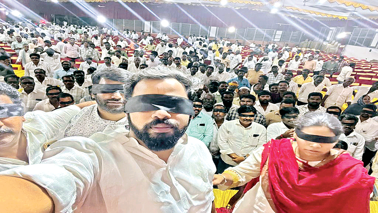 ఆళ్లగడ్డ: ఆళ్లగడ్డలో టీడీపీ విస్తృత స్థాయి సమావేశం అనంతరం టీడీపీ నాయకులు కళ్లకు గంతలు కట్టుకుని నిరసన తెలిపారు. న్యాయమే గెలవాలని కోరుకున్నారు. భూమా అఖిలప్రియ, జగత్విఖ్యాత్రెడ్డి తదితరులు పాల్గొన్నారు.