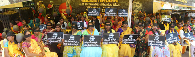 నెల్లూరు (ఆంధ్రజ్యోతి) : టీడీపీ అధినేత మాజీ ముఖ్యమంత్రి నారా చంద్రబాబునాయుడు అక్రమ అరెస్టుకు నిరసనగా ఆ పార్టీ శ్రేణులు తలపెట్టిన ఆందోళన కార్యక్రమాలు కొనసాగుతున్నాయి. బుధవారం కూడా జిల్లా వ్యాప్తంగా సామూహిక రిలే నిరాహార దీక్షలు జరిగాయి. నెల్లూరు నగరంలో మాజీ మంత్రి పొంగూరు నారాయణ ఆదేశాలతో రాష్ట్ర ప్రధాన కార్యదర్శి కోటంరెడ్డి శ్రీనివాసులురెడ్డి ఆధ్వర్యంలో ఎన్టీఆర్ భవన్ ఎదుట నిరసన కార్యక్రమాలు కొనసాగుతున్నాయి. బుధవారం జరిగిన రిలే నిరాహార దీక్షలో మహిళలు పాల్గొన్నారు. చంద్రబాబు కోసం మేముసైతం అంటూ తెలుగు మహిళలు గర్జించారు. ముఖ్యమంత్రి వైఎస్ జగన్మోహన్రెడ్డి ప్లకార్డులను తొక్కుతూ వ్యతిరేకత వ్యక్తం చేశారు. కళ్లకు నల్లరిబ్బన్లతో గంతలు కట్టుకొని మోకాళ్లపై నిలబడి వినూత్న రీతిలో ప్రభుత్వ తీరును ఎండగట్టారు. సీఎం జగన్మోహన్రెడ్డి రాష్ట్ర ప్రజల పట్ల కంసుడిలా తయారయ్యాడని తెలుగు మహిళలు విమర్శించారు. ప్రభుత్వ నిరంకుశ పాలనను ప్రజలు అనుభవిస్తున్నారని, రానున్న ఎన్నికల్లో వైసీపీకి తగిన బుద్ధి చెబుతారన్నారు. 2024 ఎన్నికల తర్వాత రాష్ట్రంలో చంద్రబాబు సారథ్యంలో రామరాజ్యం ఏర్పాటవుతుందని ఆశాభావం వ్యక్తం చేశారు.