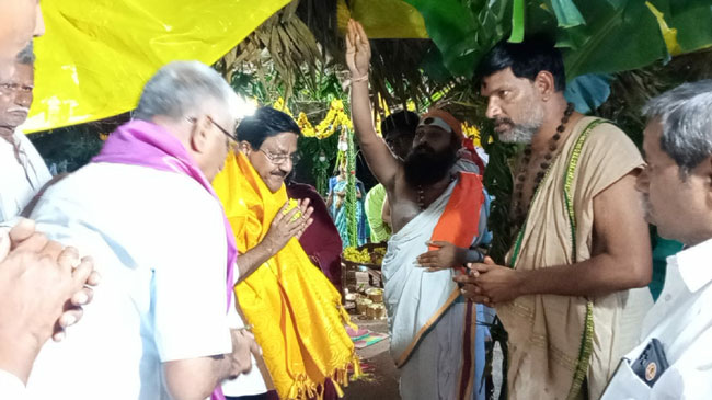 కలిగిరి, నవంబరు 6: తెలుగుదేశం పార్టీ అధినేత నారా చంద్రబాబునాయుడు అక్రమ కేసుల నుంచి బయటపడి సంపూర్ణ ఆరోగ్యంగా ఉండాలని కోరుతూ మండలంలోని ఏపినాపిలో భగమాలినీ విద్యా యాగ సహిత శత చండీ రుద్రయాగం ఎఫ్సీఐ మాజీ డైరెక్టర్ రైతు నరేంద్ర ఆధ్వర్యంలో నిర్వహించారు. ఈ సందర్భంగా మాజీ ఎమ్మెల్యే బొల్లినేని మాట్లాడుతూ 15 మంది రుత్వికులతో శ్రీజ్యోతిరాస్తు విద్యాపీఠం, వైదిక నిర్వహణ బ్రహ్మశ్రీ డాక్టర్ మహేశ్వరశర్మ సిద్ధాంతి, నేతృత్వంలో జరుగుతున్న యాగంలో పాల్గొనడం సంతోషంగా ఉందన్నారు. ఆంధ్రప్రదేశ్లో వైసీపీ ప్రభుత్వం ఏర్పడిన నాటిన నుంచి కక్ష పూరిత పాలన కొనసాగుతూ ప్రజా సంక్షేమాన్ని విస్మరించారని ఆవేదన వ్యక్తం చేశారు. ఈ యాగ ఫలంతో రానున్న ఎన్నికల్లో తెలుగుదేశం పార్టీ విజయబావుటా ఎగురవేయడంతోపాటు చంద్రబాబు ముఖ్యమంత్రి పీఠం అధిరోహించాలని ఆకాంక్షిస్తున్నామన్నారు. ఐదు రోజులపాటు జరిగే ఈ యాగ కార్యక్రమాల్లో నియోజకవర్గంలోని తెలుగుదేశం పార్టీ కుటుంబ సభ్యులు పాల్గొని అమ్మవారి కృపకు పాత్రులు కావాలని కోరుతున్నామన్నారు. ఈ కార్యక్రమంలో టీడీపీ మండల కన్వీనర్ బిజ్జం కృష్ణారెడ్డి, నాయకులు బొల్లినేని వెంకటసుబ్బయ్య, కృష్ణయ్య, సర్పంచు వరప్రసాద్, పూసాల వెంగపనాయుడు, కల్లూరు చంద్రమౌళి తదితరులు పాల్గొన్నారు.