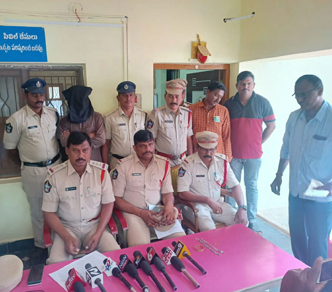 బుచ్చిరెడ్డిపాళెం, జూలై 20: మండలంలోని పెనుబల్లికి చెందిన మతిస్థిమితంలేని మహిళ ప్రతిమ హత్య కేసులో నిందితుడు మైపాటి పెంచలయ్యను గురువారం సీఐ జీ.రామారావు చాకచక్యంగా అరెస్టు చేశారు. ఈ మేరకు గురువారం బుచ్చి పోలీస్స్టేషన్లో ఎస్ఐ కే.వీరప్రతాప్, సిబ్బందితో కలసి ఆయన విలేకరులకు హత్య కేసు వివరాలు వెల్లడించారు. దాసరి ప్రత్యూష అక్క ప్రతిమ మానసిక వికలాంగురాలు, ఆమె గత నెల 26న రాత్రి 10గంటల తర్వాత నుంచి ఇంట్లో కనిపించకపోవడంతో పలుచోట్ల, బంధువుల వద్ద విచారించినా ఆచూకీ లేదు. దీంతో ఈనెల 11న ప్రత్యూష ఇచ్చిన ఫిర్యాదు మేరకు పోలీసులు కేసు నమోదు చేసి దర్యాప్తు చేపట్టారు. ఈ క్రమంలో 13వ తేదీ ఉదయం ఇంటి పరిసరాలలో అక్క కోసం వెతుకుతున్న చెల్లెలకు దారిలో పలుచోట్ల ప్రతిమకు చెందిన చేతి గాజు ముక్కలు, చెప్పులు పడి ఉండడంతో అదే మార్గంలో కొంతదూరం వెతుకుతూ వెళ్లింది. జొన్నవాడ పీహెచ్సీ ఎదురుగా జొన్నవాడ ఆలయ భూమిలో ఓ గుంత, దానిపై పరుపు ఉండడాన్ని గమనించి అక్కడికి వెఎళ్లి ఆ పరుపును తొలగించి చూడగా ఇంటి నుంచి వెళ్లేటప్పుడు తన అక్క వేసుకుని ఉన్న డ్రెస్ కనిపించింది. కాగా గుంత నుంచి దుర్వాసన వస్తుండడంతో వెంటనే విషయాన్ని పోలీసులకు తెలిపింది. దీంతో సీఐ జీ.రామారావు, ఎస్ఐ కే.వీరప్రతాప్ సిబ్బందితో ఘటనా స్థలికి చేరుకుని మృతదేహాన్ని వెలికి తీయించారు. అనంతరం శవపరీక్ష అనంతరం విచారణ వేగవంతం చేశారు. ఈ క్రమంలో మృతురాలి తల్లికి ఇంటికి వచ్చి ఇంజక్షన్ వేసి వెళుతున్న పెనుబల్లిలో తిప్పపైన నివాసం ఉంటున్న మైపాటి పెంచలయ్యపై అనుమానంతో అతనిని గురువారం పెనుబల్లి, జొన్నవాడ రోడ్డులో విద్యుత్ సబ్స్టేషన్ వద్ద అదుపులోకి తీసుకుని విచారించారు. దీంతో అసలు విషయం వెలుగు చూసింది. తల్లికి ఇంజక్షన్ వేసేందుకు వెళుతున్న పెంచలయ్య కన్ను ఆమె మతిస్థితిమితం లేని, భర్తను వదిలేసి ఒంటరిగా ఉన్న కుమార్తె ప్రతిమపై కన్ను పడింది. గత నెల 26వ తేదీ రాత్రి 11గంటల సమయంలో ఇంటి బయట ఉన్న ప్రతిమకు మాయమాటలు చెప్పి ఇంటి పక్కనే ఉన్న గుంతలోకి తీసుకెళ్లి అత్యాచారం చేసి, అనంతరం హత్యచేసి మృతదేహాన్ని జొన్నవాడ పీహెచ్సీ ఎదురుగా ఉన్న ఆలయ భూమిలో పాతిపెట్డాడు. అతని నుంచి మృతురాకి చెందిన బంగారు, వెండి సొత్తు స్వాధీనం చేసుకున్నారు. నిందితుడుని కోర్టులో హాజరుపర్చగా రిమాండ్కు తరలించారు. రూరల్ డీఎస్పీ పి. వీరాంజనేయరెడ్డి సూచనల మేరకు బుచ్చి సీఐ జి.రామారావు, ఎస్ఐ. కే. వీరప్రతాప్ సిబ్బంది నిందితుడ్ని అరెస్టు చేసినట్లు తెలిపారు. ఈ కేసులో ప్రతిభ చూపిన సిబ్బందిని ఎస్పీ తిరుమలేశ్వరరెడ్డి అభినందించి రివార్డులు అందజేశారు.
