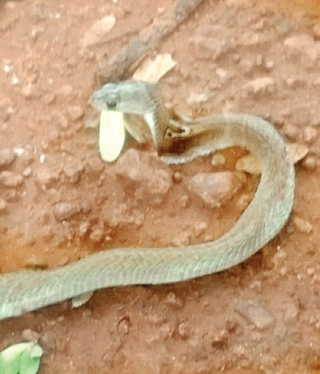 బిట్రగుంట, నవంబరు 24: బోగోలు మండలం విశ్వనాథరావుపేట పంచాయతీ కొత్తూరు ప్రభుత్వ ప్రాథమిక పాఠశాల ఆవరణలో శుక్రవారం నాగుపాము హల్చల్ చేసింది. స్థానికుల కథనం మేరకు.. ఉదయం 10 గంటల సమయంలో పాఠశాల ఎదురుగా ఉన్న సరస్వతి విగ్రహం వద్ద బుసలు కొడుతున్న శబ్ధం విన్న ప్రధానోపాధ్యాయిని శారద పాము ఉన్నట్లు గ్రహంచి స్థానికులకు తెలపడంతో వారు పాము కొట్టి చంపేశారు. పడగ విప్పి బుసలు కొట్టిన నాగు పామును చూపి విద్యార్థులు హడలిపోయారు. పాఠశాలకు ప్రహరీ లేకపోవడం వలన బయట నుంచి విషపురుగులు, పాములు, జంతువులు వస్తున్నాయని విద్యార్థులు వాపోయారు.